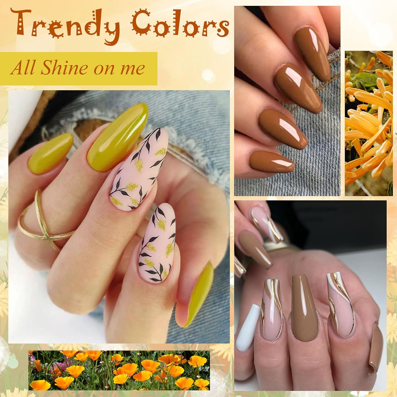 - What You Get: 9 Colors Gel Nail Polish + 3PCS Function Gel (0.25oz/7ml each bottle). 9 colors beautiful shades of popular and trendy colors suitable for all seasons and daily routine life!