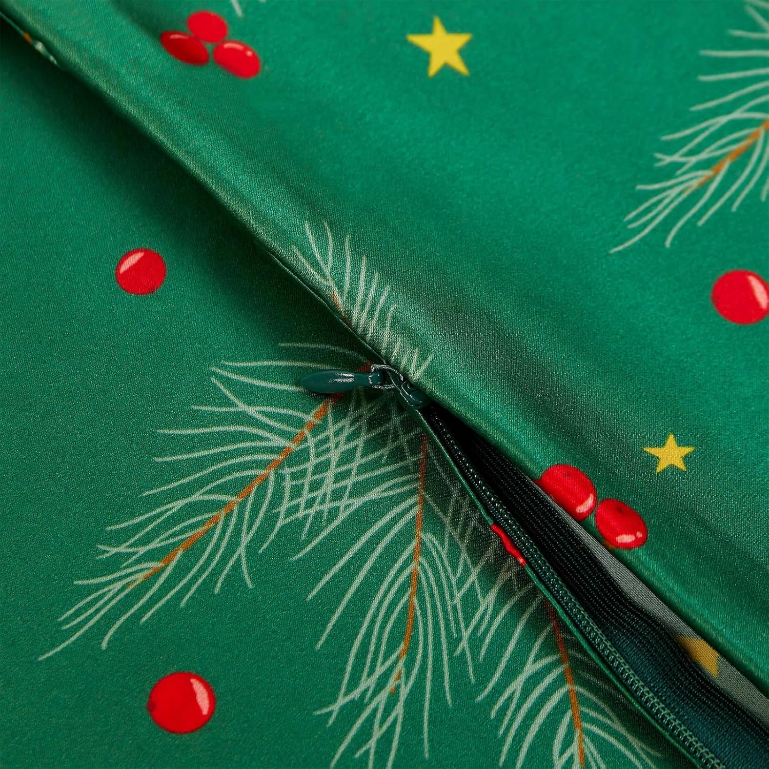 THXSILK Christmas Style 6A+ Grade Mulberry Silk Pillowcase for Hair and Skin, 22 Momme 100% Pure Silk Pillow Case with Hidden Zipper, Christmas Holly Printed Pillow Cover(Queen Size 20"x30",Green)