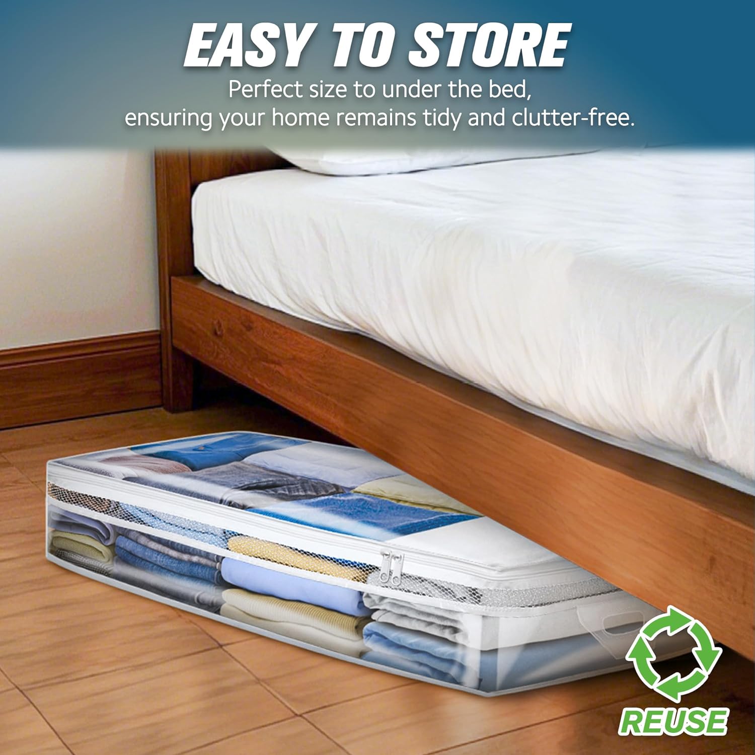 - Underbed Storage for Clothing: Our large, flexible clothing storage bags offer a space-saving alternative to bulky bins. Easily stowable under beds or in closets and attics, they're perfect for rooms and living areas, maximizing storage without sacrificing style