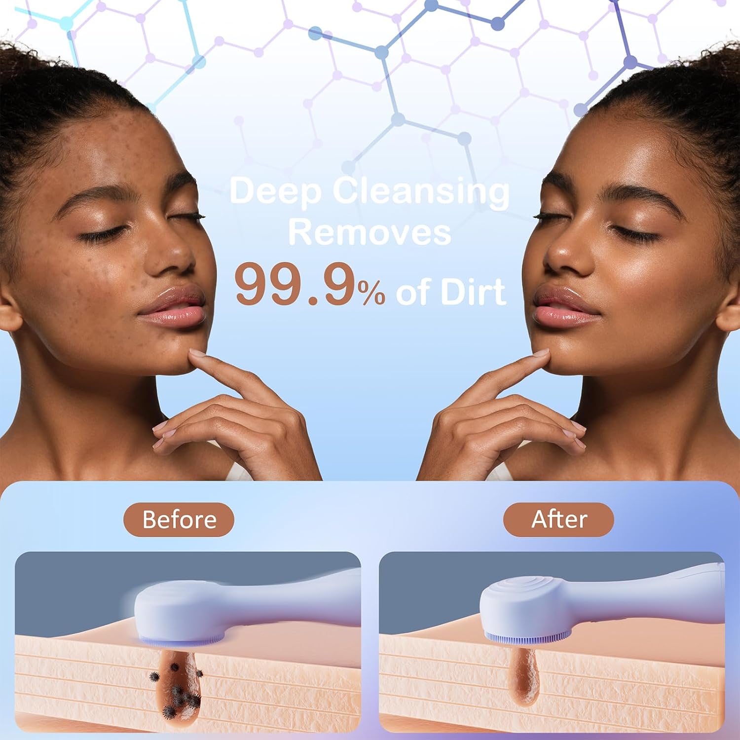 - COMPREHENSIVE CLEANING, NO BLIND SPOTS: Unlike other face cleansing brush, our facial brushes for cleaning and exfoliating have thick, soft silicone bristles on both the top and bottom, ensuring a thorough clean even in hard-to-reach areas like the sides of your nose, T-zone, and chin. the soft silicone the brush of exfoliator silicone face scrubber design is very gentle, ensuring that you use it safely and comfortably, without irritating your skin