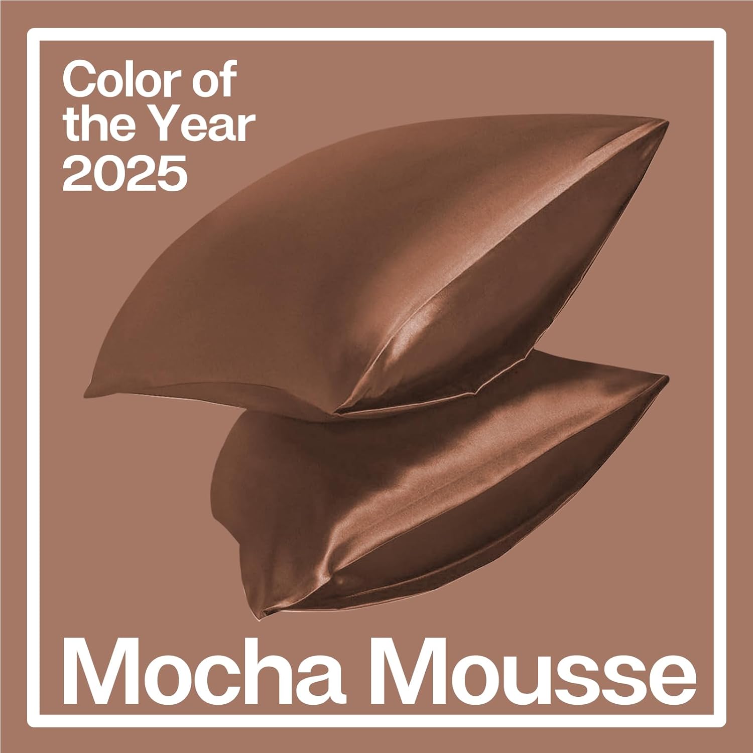 MR&HM Satin Pillowcase for Hair and Skin, Silk Satin Pillowcase 2 Pack, Queen Size Pillow Cases Set of 2, Silky Pillow Cover with Envelope Closure (20x30, Mocha Mousse)