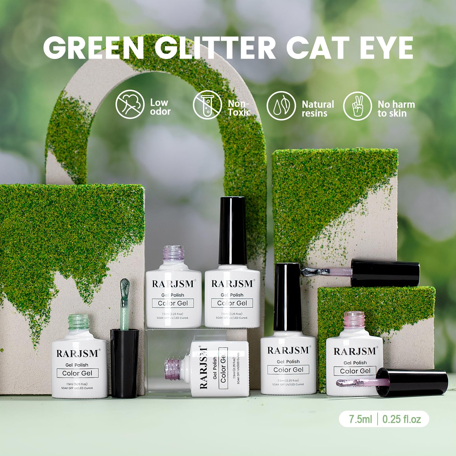 - GREEN CAT EYE EFFECT:Each gel polish in this cat eye gel nail polish set contains reflective sparkly diamond ceramic glitter, adding a dazzling touch that shines brilliantly under light, making your nails stand out effortlessly