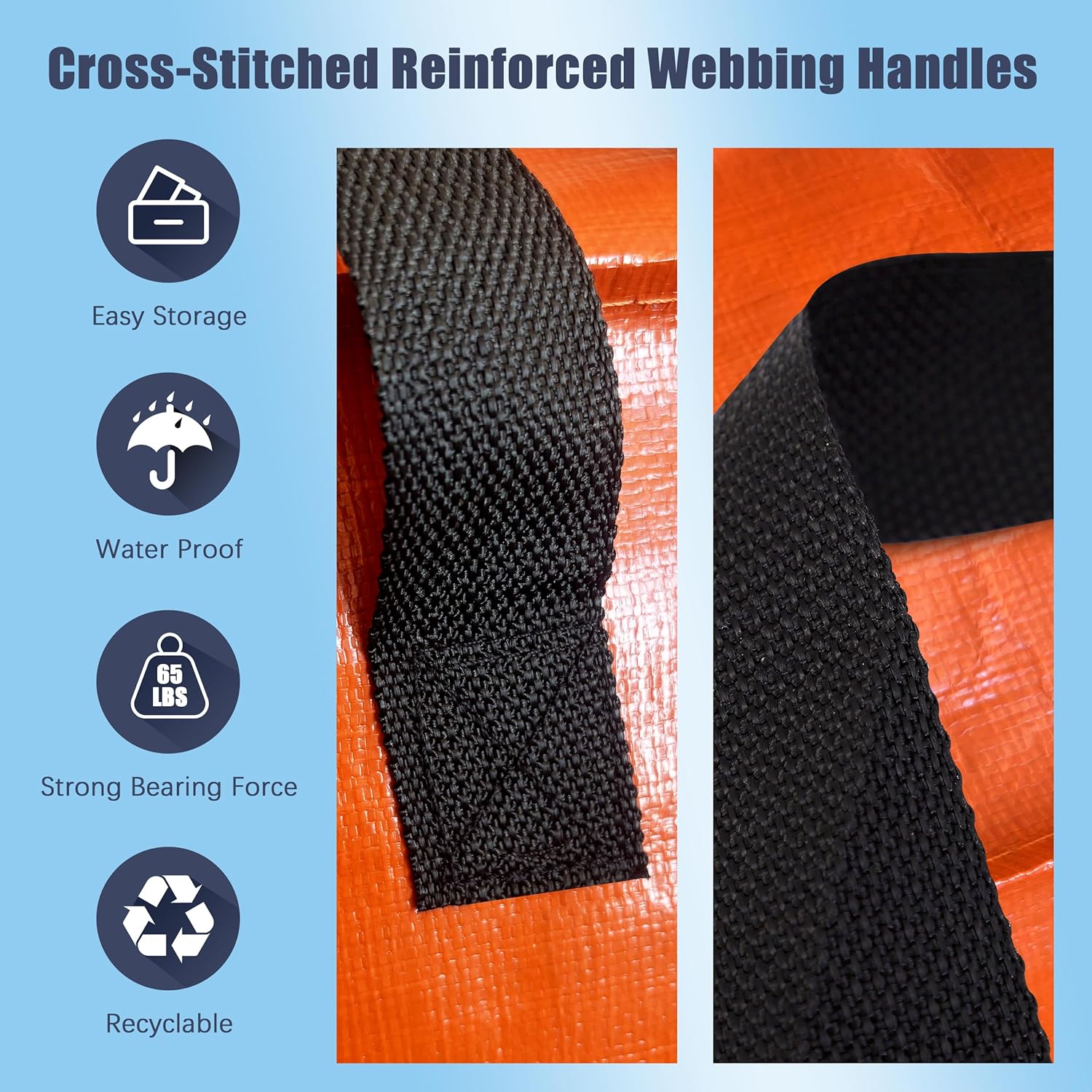 8 Pack Large Strong Moving Bags with Zippers & Carrying Handles - Water-Resistant - Heavy Duty Storage Tote for Space Saving, Fold Flat, Alternative to Moving Box (Orange)