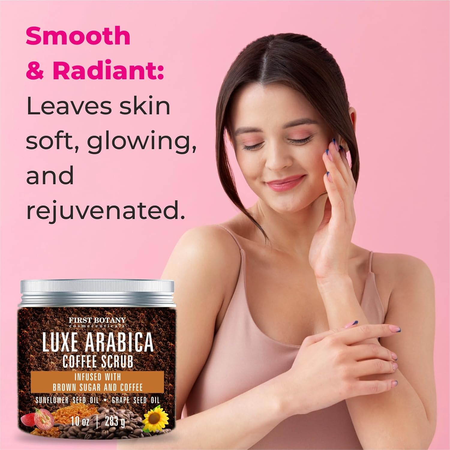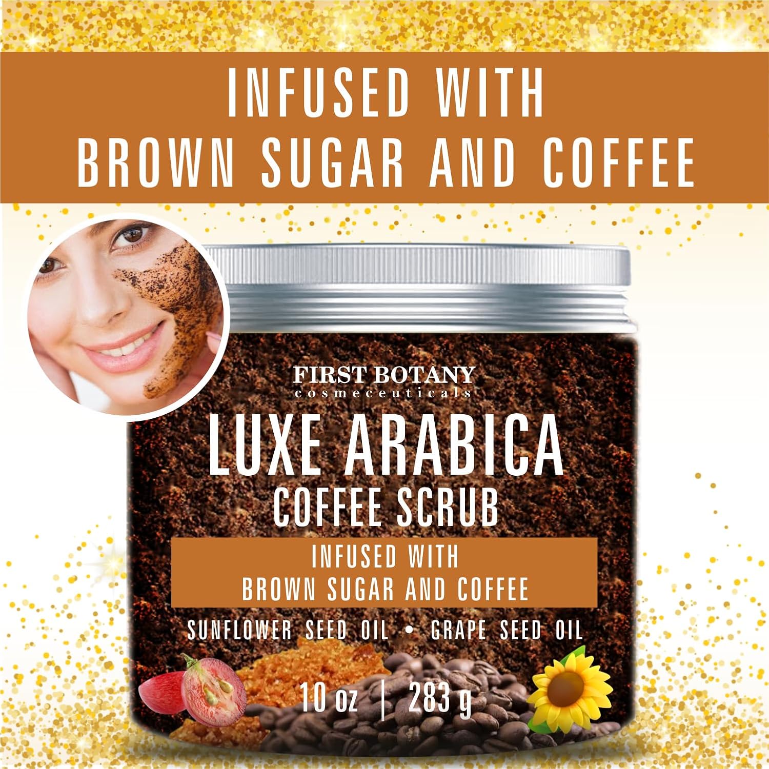 First Botany Body Scrub - Natural Exfoliating Sugar Scrub & Body and Face Souffle helps with Moisturizing Skin, Acne, Cellulite, Dead Skin Scars, Wrinkles (10 fl oz, Brown Sugar + Coffee)