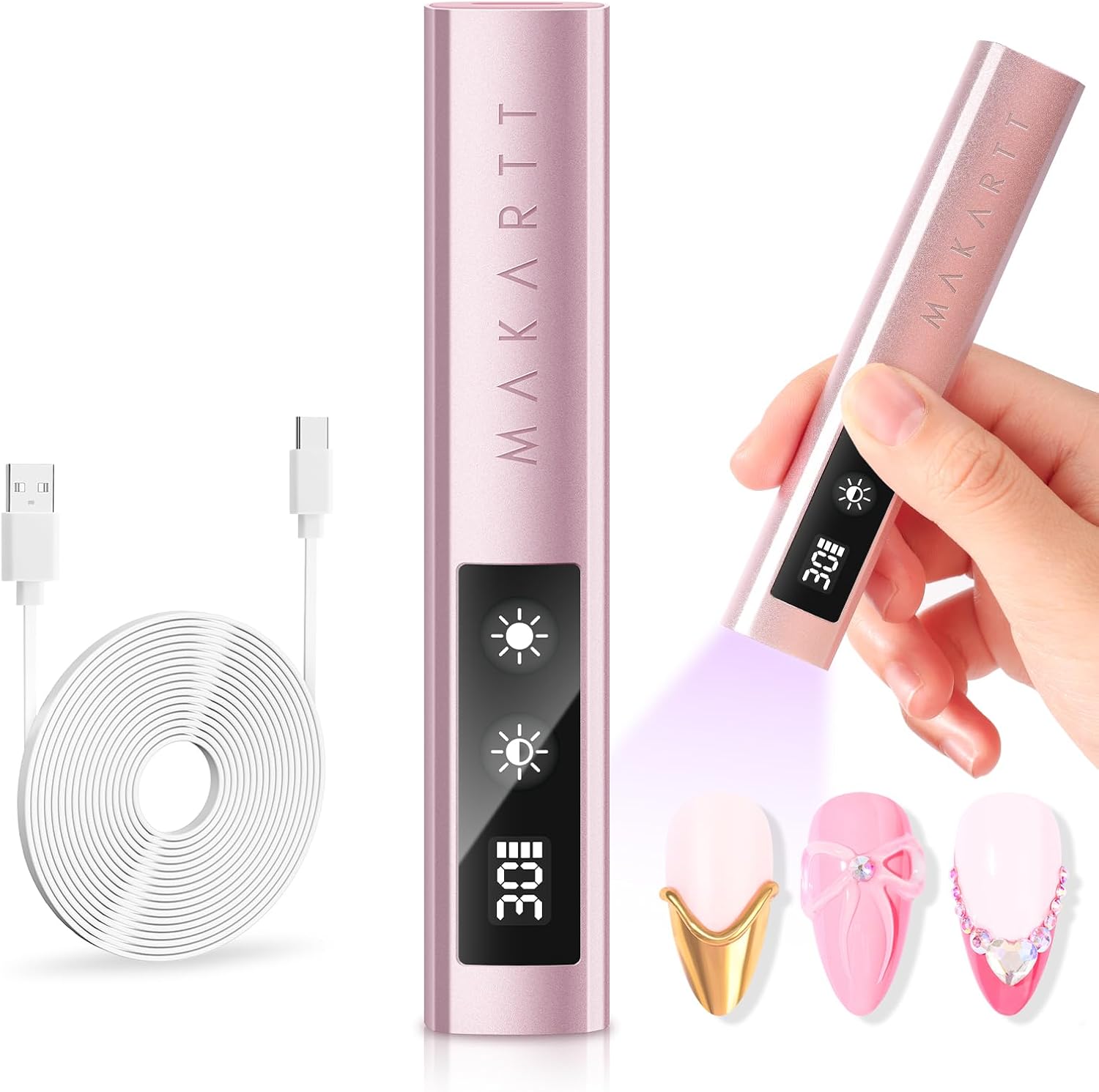 Makartt Handheld UV Nail Lamp with Painless Mode: Portable 800mAh Flash Cure Lamp for Fast Curing Gel Polish Nails Tips & Glue Rechargeable USB Nail Art Light with LCD 3 Timer for Home Salon Use