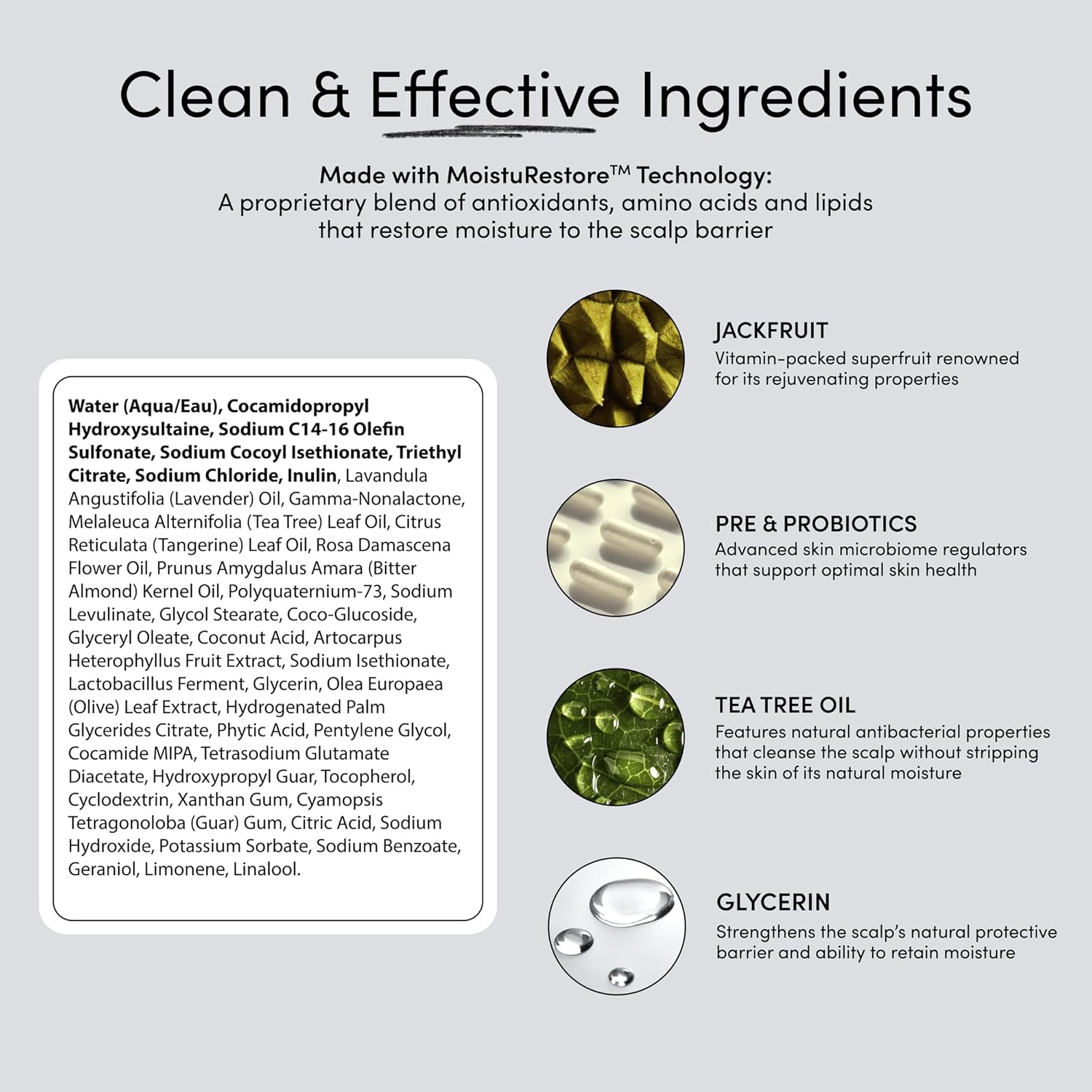 - EVERYDAY HYDRATION SHAMPOO: This moisture-rich shampoo works to deeply hydrate from root to tip, leaving hair soft, silky, and manageable. Powered by Tea Tree Oil, MoistuRestore Technology, prebiotics, essential lipids, and proteins, it delivers lasting hydration and reduces hair breakage by over 82%.