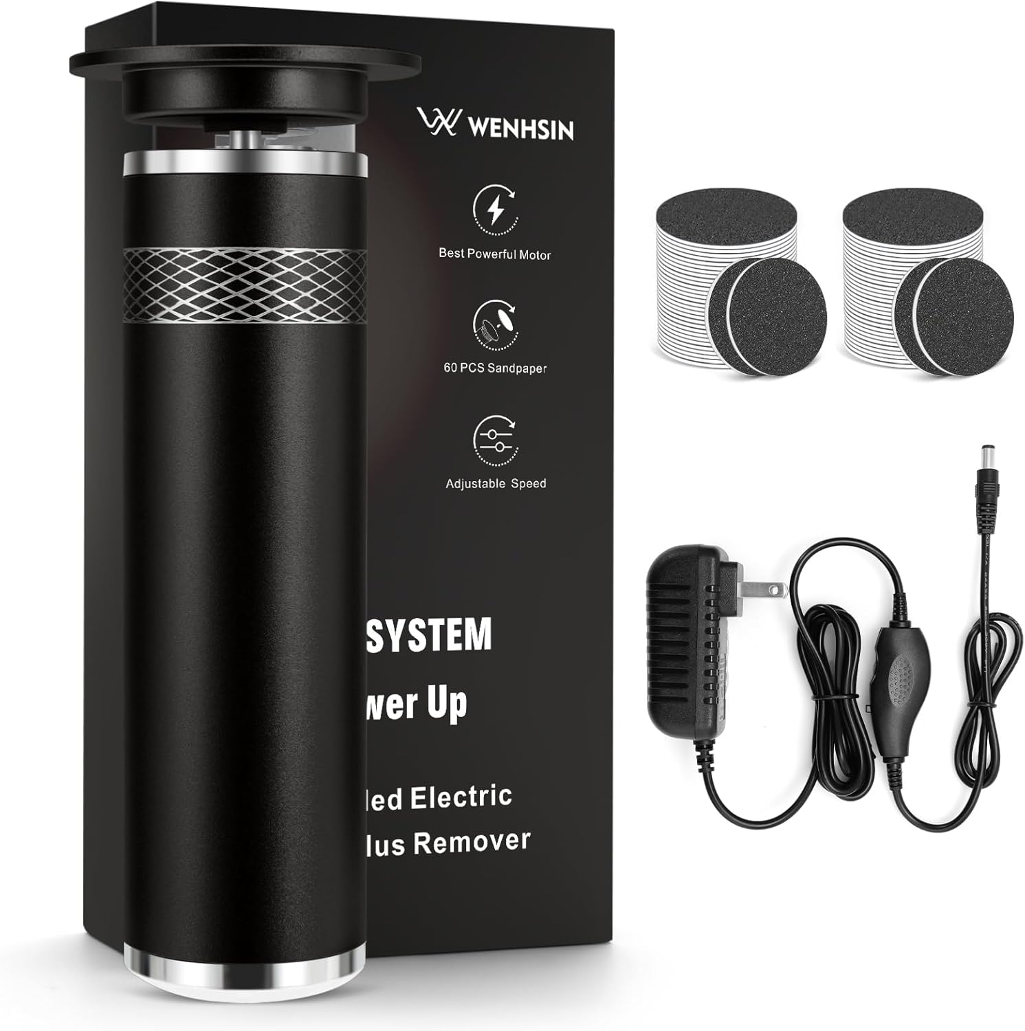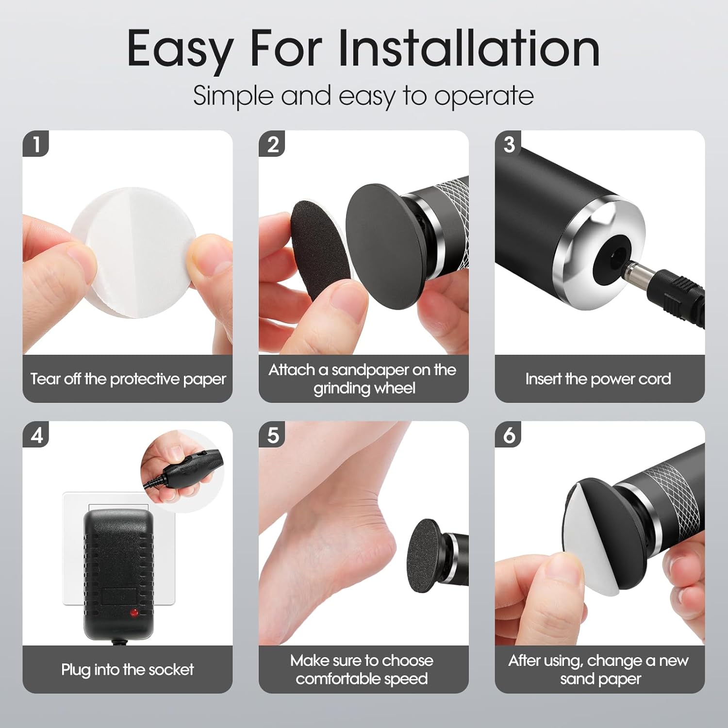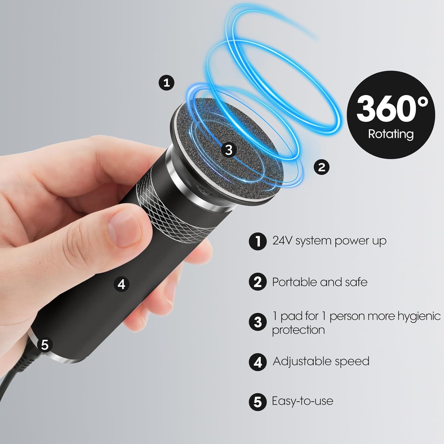 - 【Powerful, Safe and Adjustable Speed】24V system with a better powerful motor, 360-degree rotating to remove calluses, easier and comfortable to handle. Providing safety for removing different types of dead skins and calluses from lower speed to higher speed.