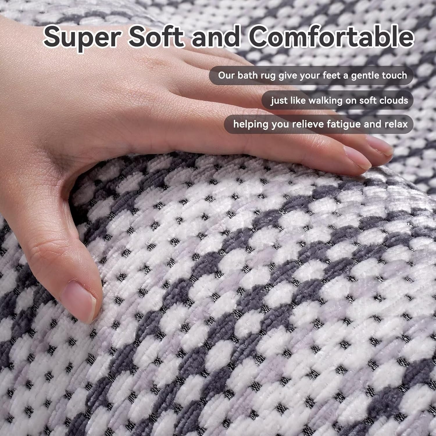 Bathroom Rugs Mat,Soft and Absorbent Chenille Bath Rugs, Ultra Thin Non-Slip Bath Carpet, Machine Wash Dry,Braided Bath Mat for Bathroom Floor,Tub and Shower, (Grey 24x35)
