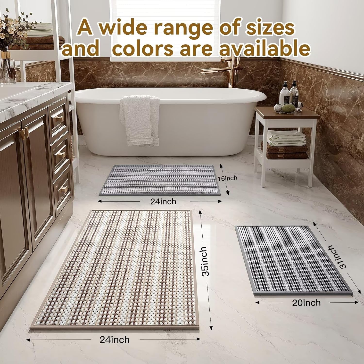 - SUPER ABSORBENT QUICK DRYING BATHROOM RUG - The bathroom rug is made from chenille.This material can immediately dry your feet when you step on them, keep the water to stay on and in the mat and not spill over onto the floor,and prevent the floor from getting wet.