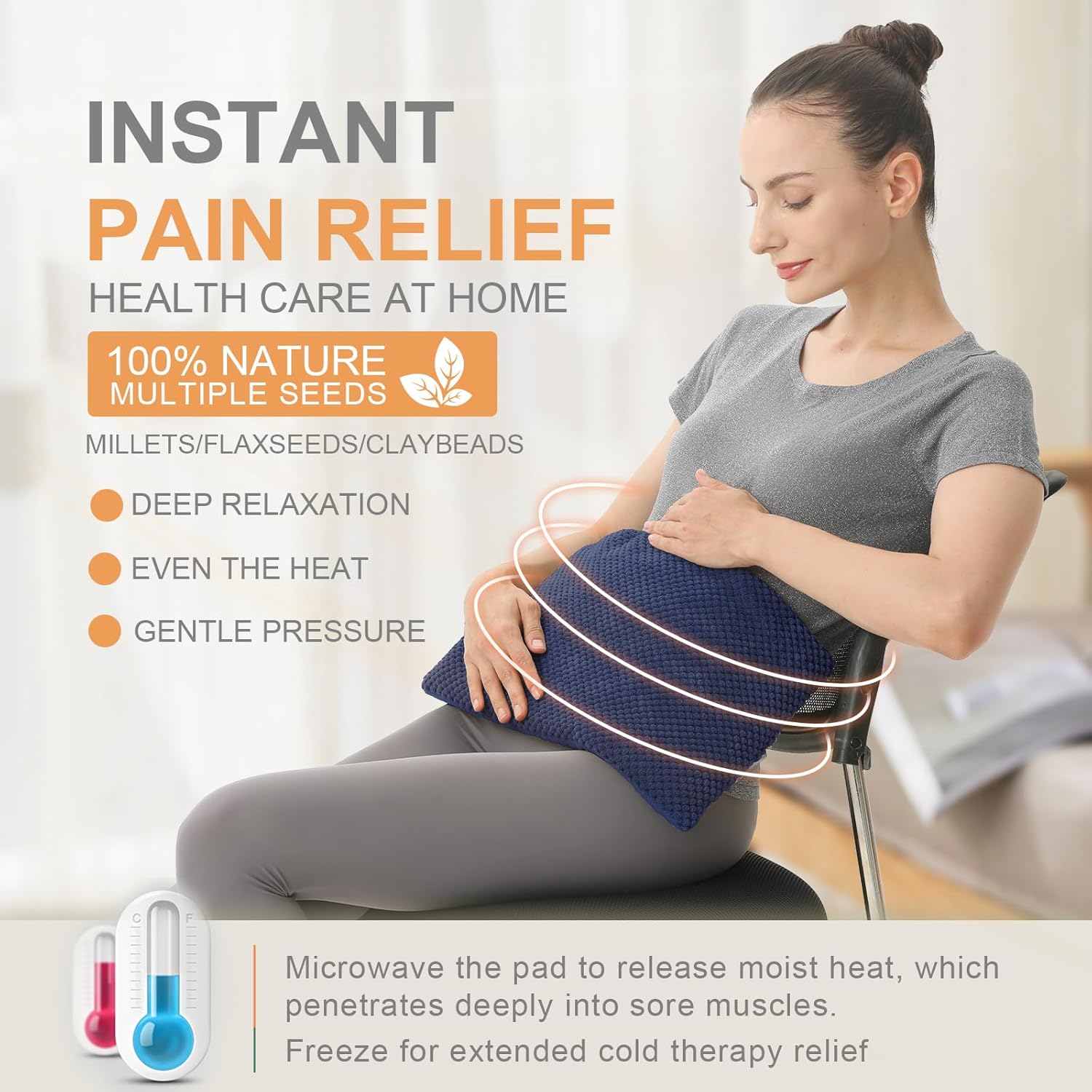 • KEEP WARM, FEEL GREAT: Our heat pack is generously filled with all-natural, unscented ingredients: millets, flaxseeds, and clay beads. Together, they deliver long-lasting heat perfect for soothing cramps, sore muscles, and stress. It's also a fantastic aid for menstrual discomfort