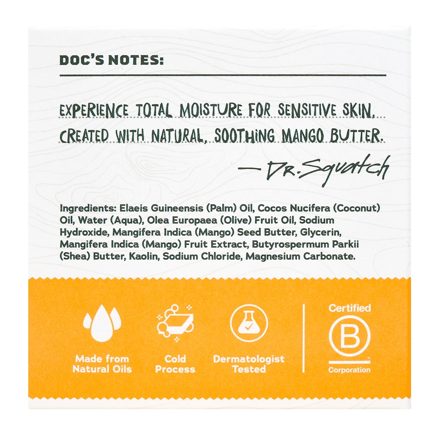 Dr. Squatch NEW Total Moisture Bar Soap for Men - No Added Fragrance Formulated for Sensitive Skin - Mango Butter (5 oz, 3-pack)