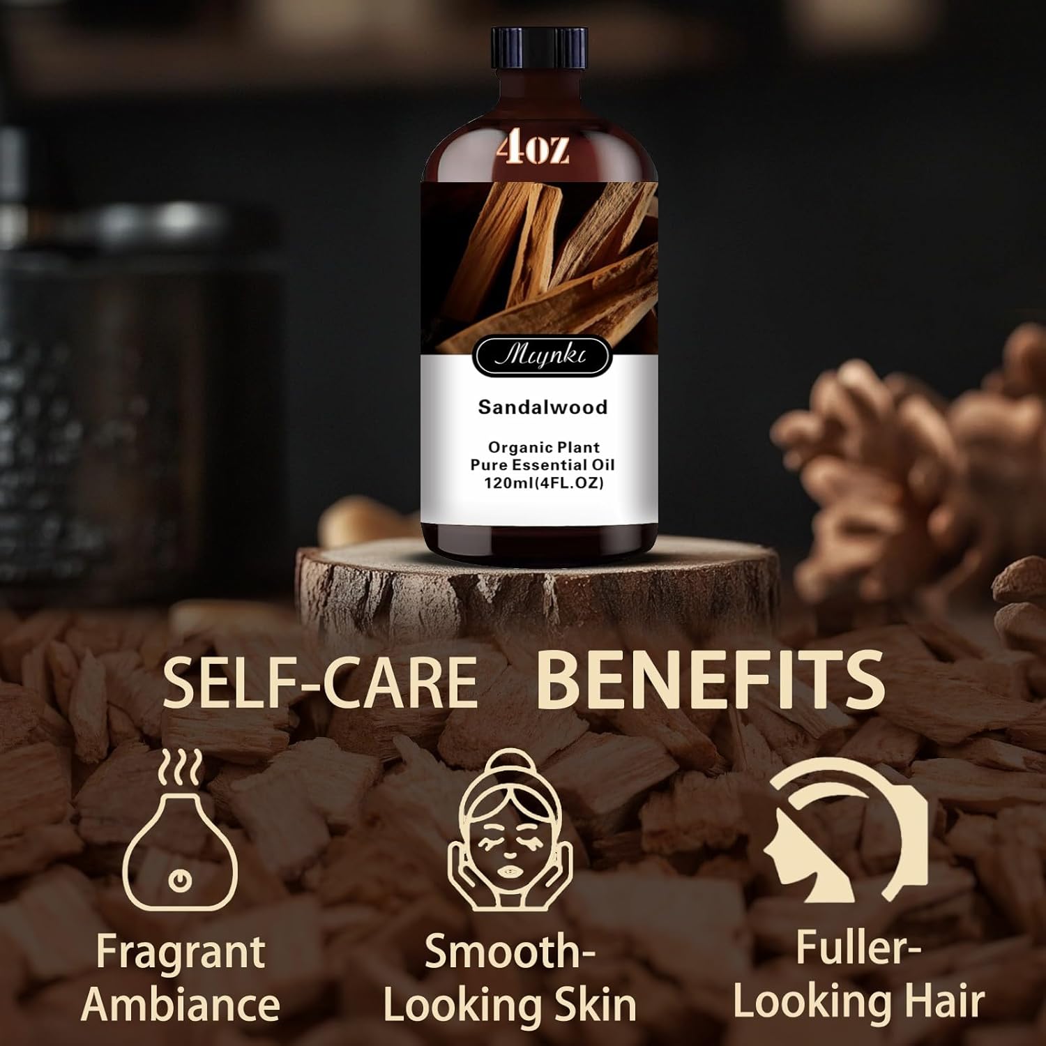 Sandalwood Fragrance Oil-Sandalwood Essential Oil 4.33oz (130ml)-100% Pure Natural Scent for Diffusers, Candles, Soap Making & Aromatherapy-Relaxing Home & Gift Essential Oil for Bath, Massage