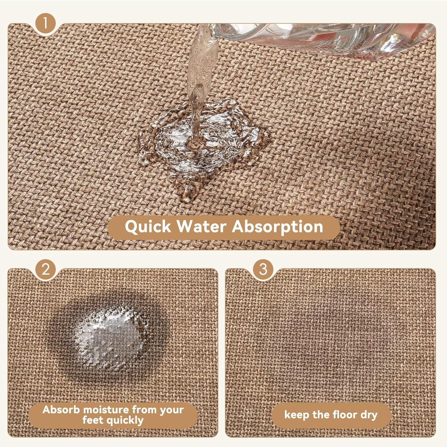 - SUPER ABSORBENT QUICK DRYING - This thin bath mat is woven with absorbent, quick-drying faux linen fabric, so when you get out of the bathtub or shower, the absorbent bath mat will quickly soak up the dripping water, protecting your feet and floors from getting wet. Our fabric process also allows the rug to dry quickly in an open-air environment, giving you a dry and comfortable bathroom.