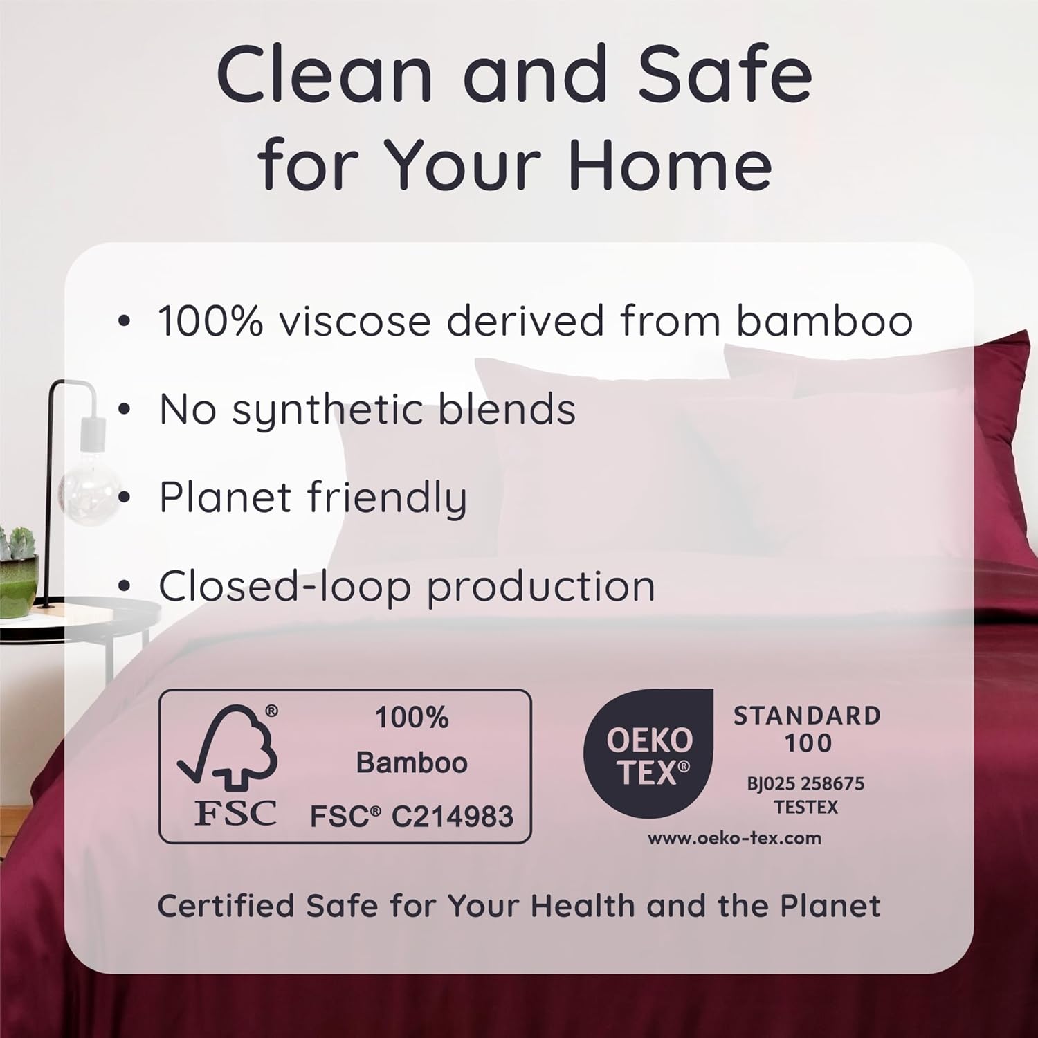 Bambaw 100% Viscose Derived from Bamboo Pillowcase King Size – Set of 2 Cooling Pillow Cases King with Envelope Closure, Anti Acne Pillow Case, Breathable & Super Soft Pillow Cases (Burgundy)