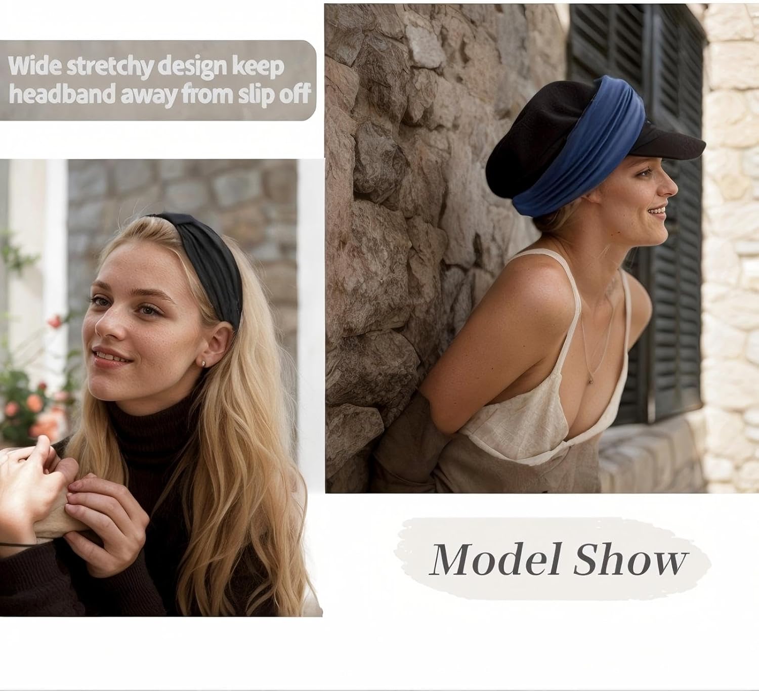 12-Pack Wide Stretch Headbands for Women - Non-Slip Extra Wide Turban Hair Bands for Workout, African Style, Sports & Daily Use (Breathable, All-Day Comfort) Color1 (Color2)