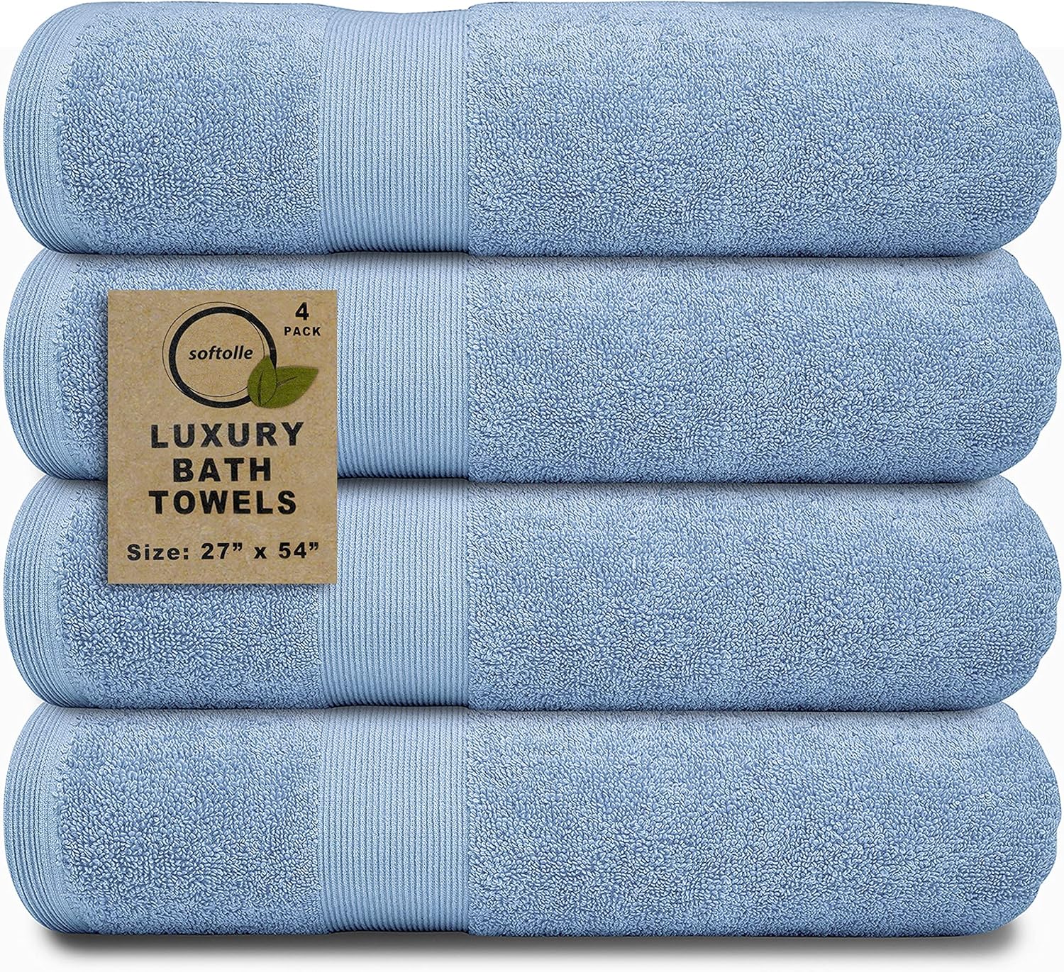 Softolle Luxury Bath Towels Set of 4 (27” x 54”) | Towels for Bathroom | Super Soft | Highly Absorbent Towels for Home, Spa, Gym (Sky Blue)