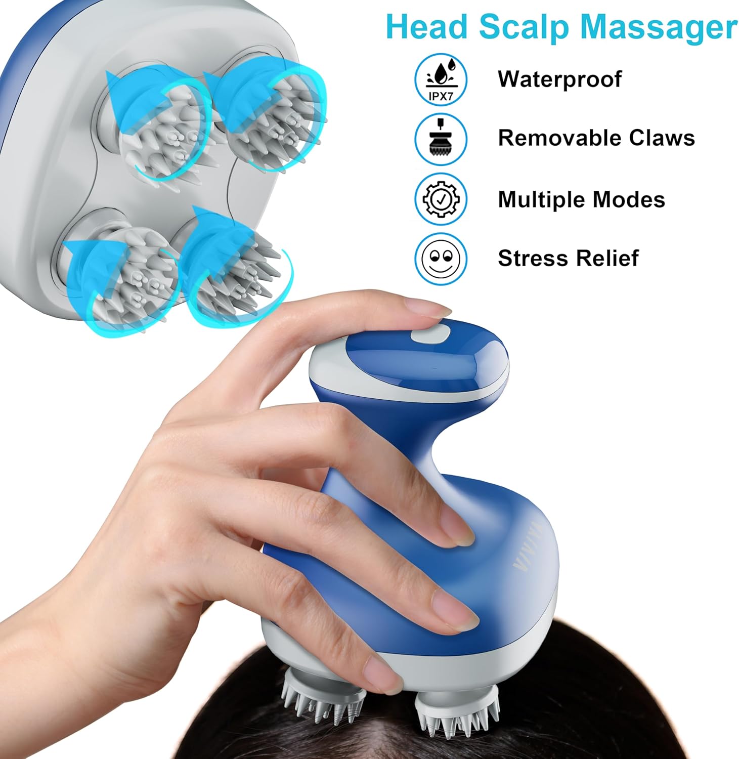 Electric Scalp Massager, Portable Rechargeable Head Massager with 8 Removable Massage Claws, Waterproof Handheld Hair Scalp Scratcher for Full-Body Massage and Stress Relax