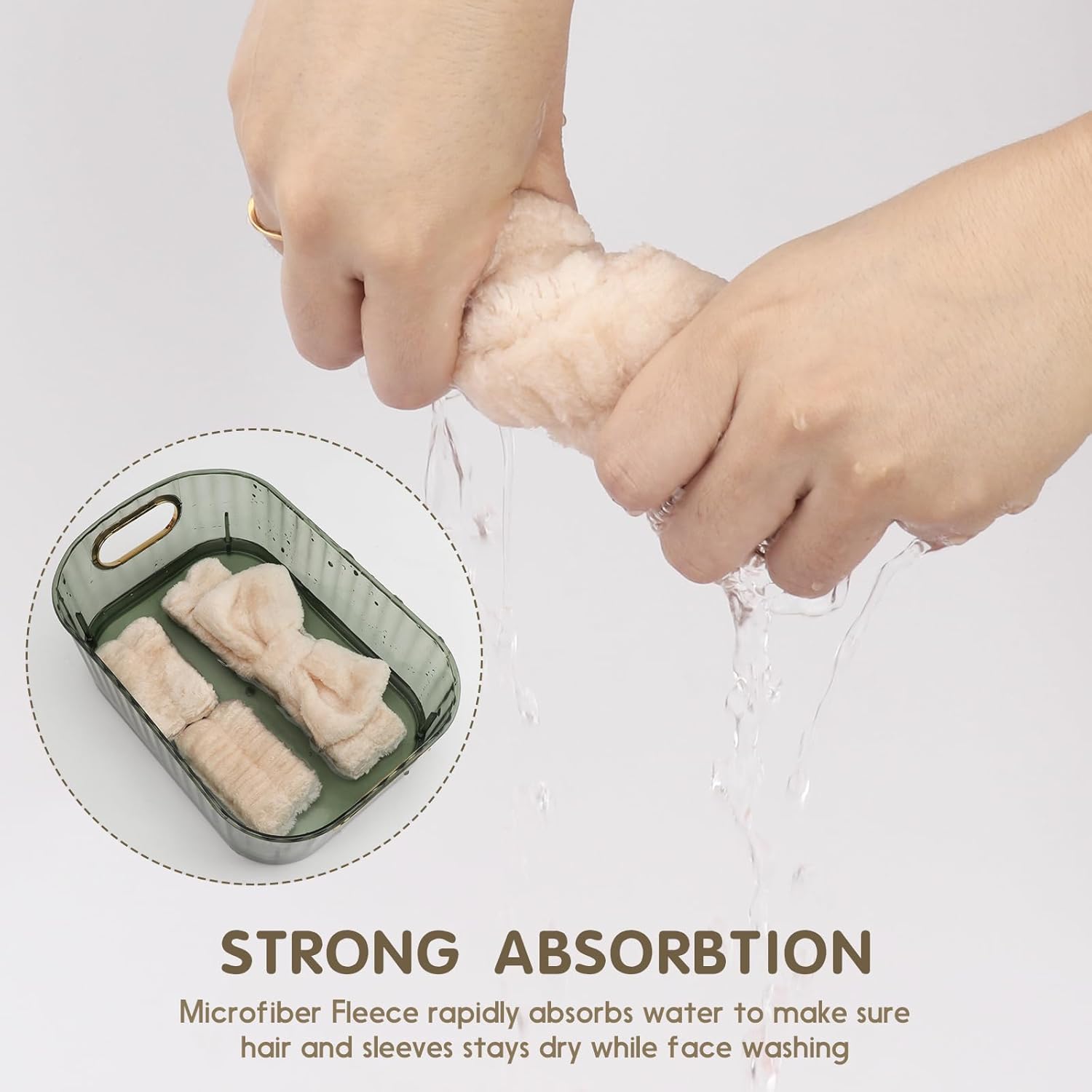 - Soft, fluffy and Absorbent Skincare Headband:The face wash wristband and headband set is made of premium microfiber material, touch soft, wear comfortable and skin-friendly, give you wonderful use experience. And fiber material has enough water absorption, effectively absorb flowing water and prevents the liquid from spreading down the arm, making it more convenient for you to use.