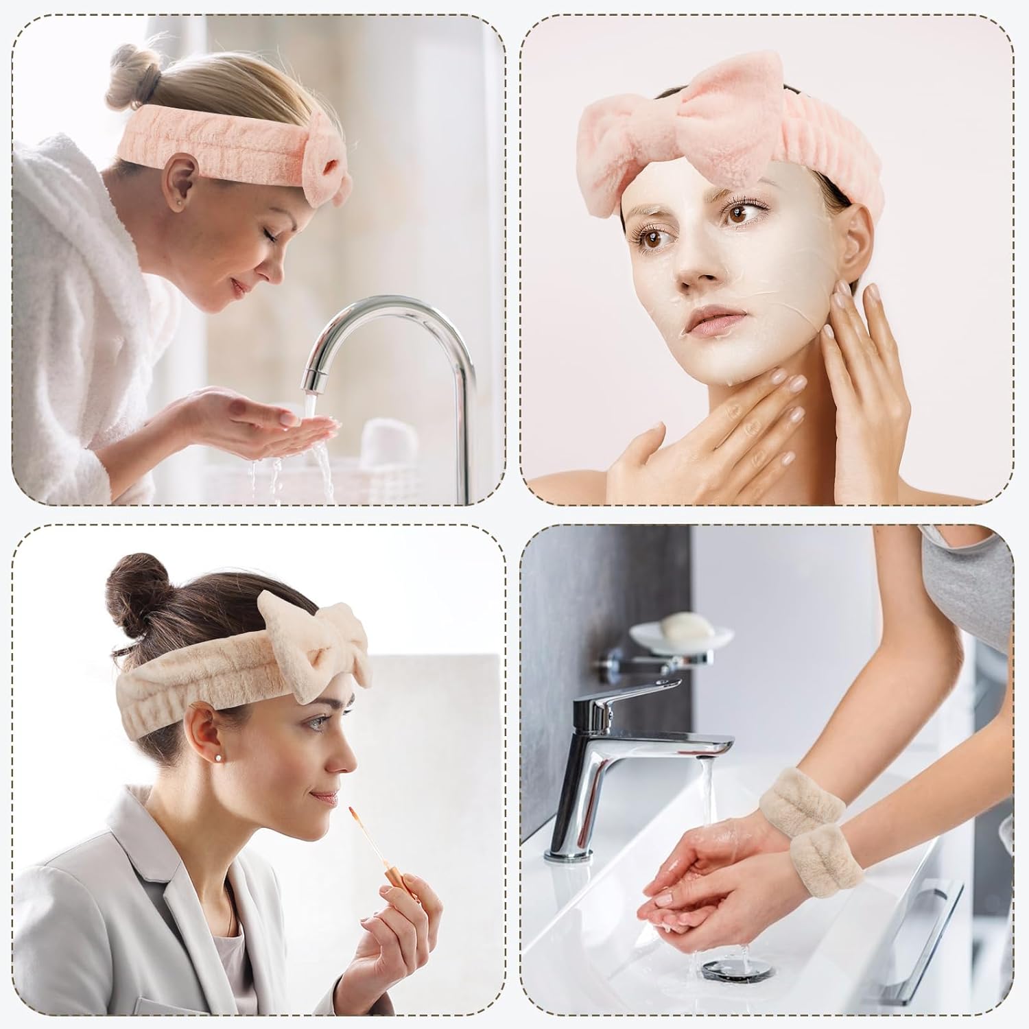 - Various Application: This 2 set facial headband and wrist band contains 6pcs, enough for daily use or share with friend or families, they are suitable for making up and skin care, perfect addition to your morning and nightly skincare routine! Would be great for teens girls birthday party treat or bachelorette/bridal party ladies sleep over party gift. And it's also excellent for yoga, exercise and daily use etc.