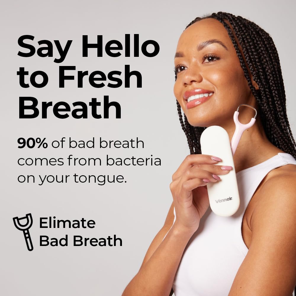 Venneir® Tongue Scraper with Travel Case, Oral Glide Pro–Bad Breath Treatment, Medical-Grade Stainless Steel– for Adults & Kids. 100% Rustproof, Sleek & Effective Design (Slate White)
