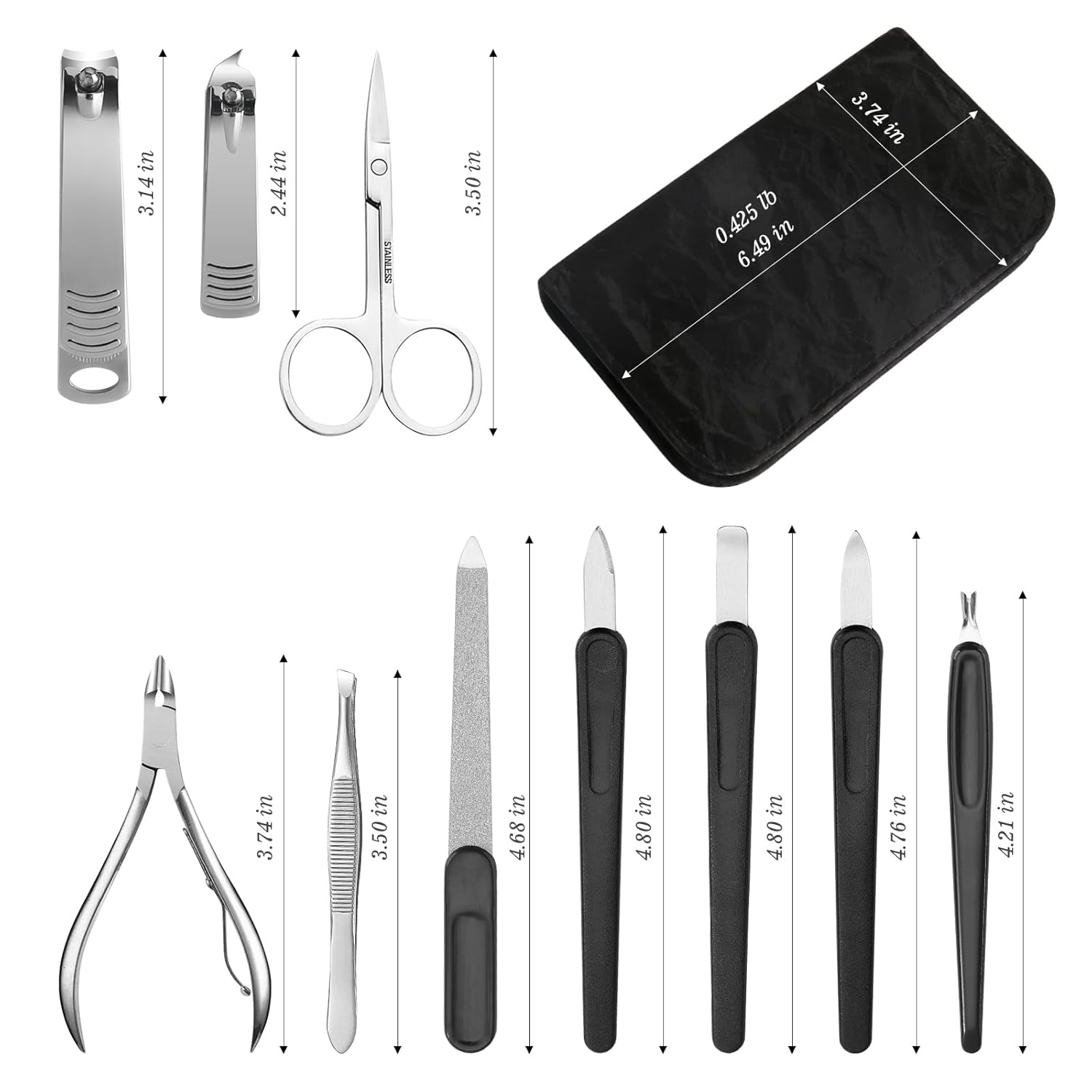 - [Multi-Functional Tools] The high-quality professional manicure and pedicure it contains 10 kinds of care tools for taking care of your hands, face, and feet,It works great for everyone, no matter if you're male or female. It's like a total manicure package, with a pedicure kit, pro-level nail clippers, and a handy nail file all in one.