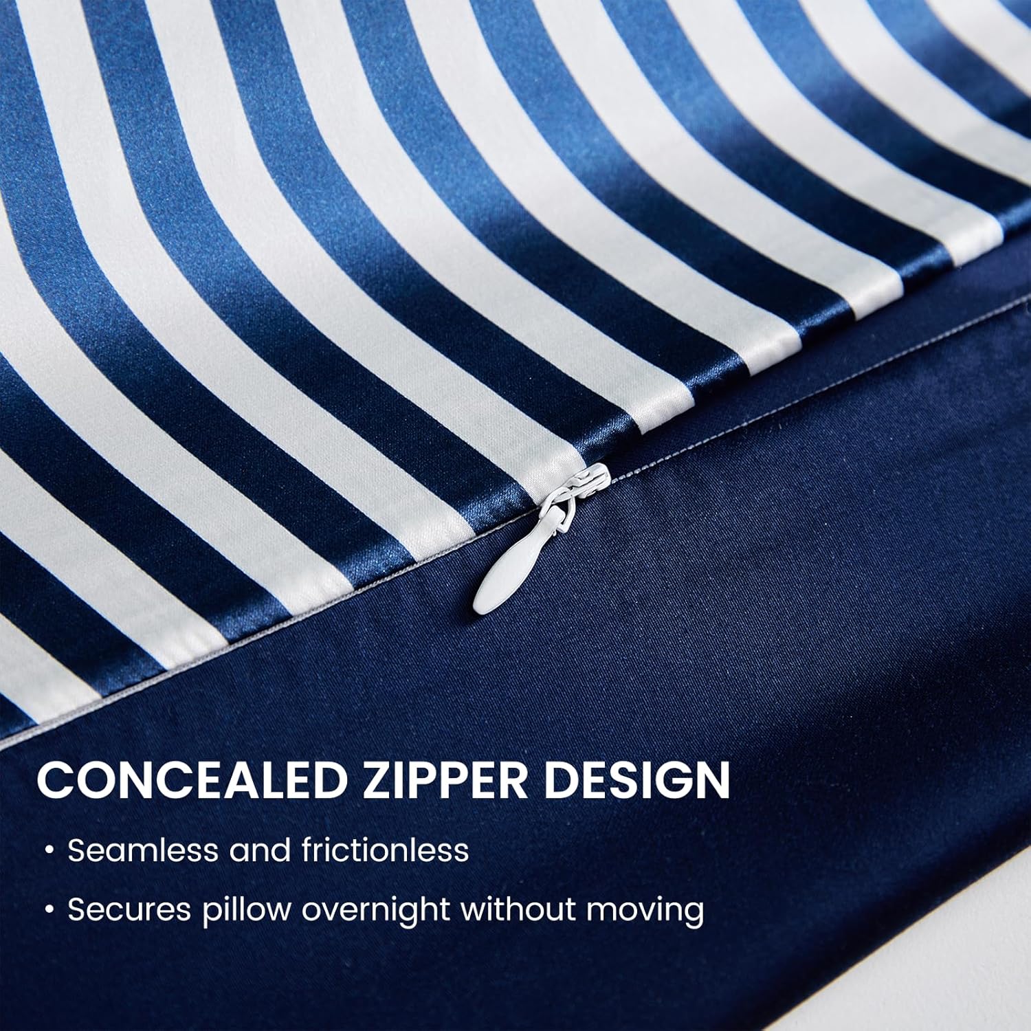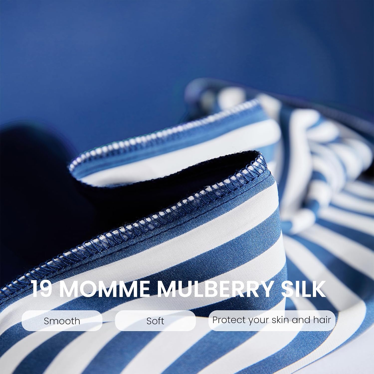 THXSILK Mulberry Silk Pillowcase for Hair and Skin Health, Grade 6A+ Mulberry Silk Pillowcase with Hidden Zipper, Soft and Breathable, 1pc (Queen 20"x30", Blue White Stripes)