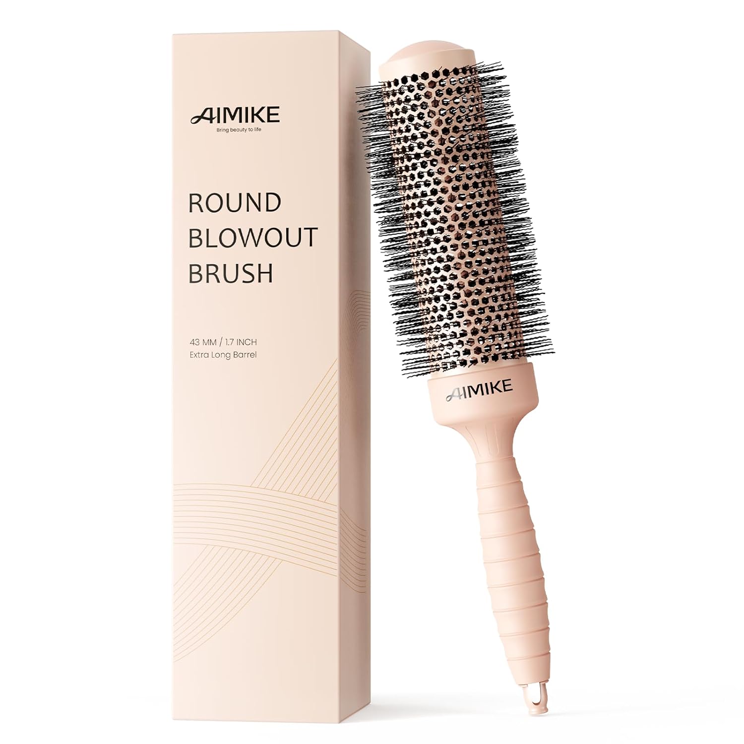 AIMIKE Round Brush for Blow Out, Extra Long Round Hair Brush w/Nano Thermal Ceramic & Ionic Tech, for Blow Drying & Styling, Curling and Shine - Barrel 1.7 inch
