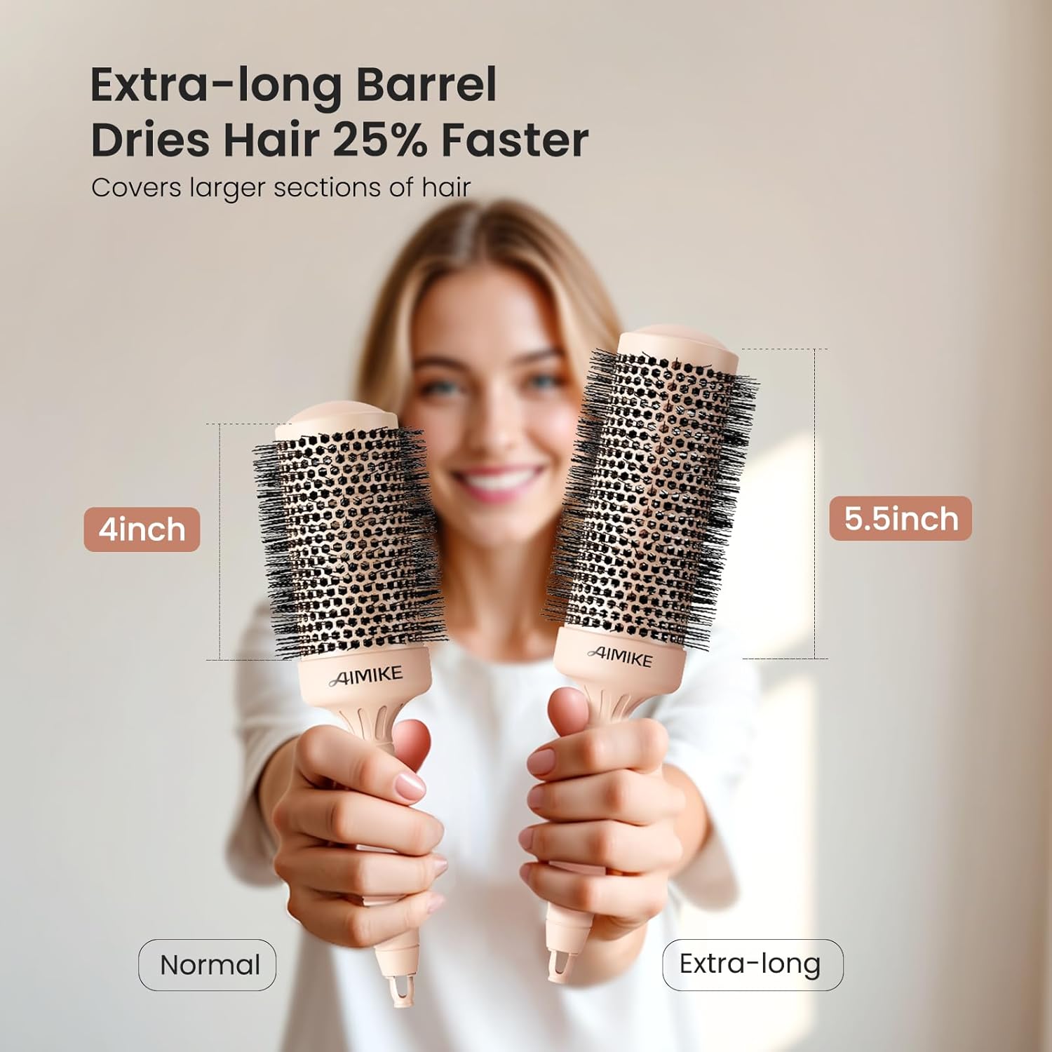 - 25% Faster Hair Drying: Extended round brush designed with a longer barrel than the normal one covers larger sections of hair and dries more hair in shorter time, especially for long and thick hair. With AIMIKE’s longer barrel brush, cutting drying time by up to 25%, achieving ultimate blowout in no time