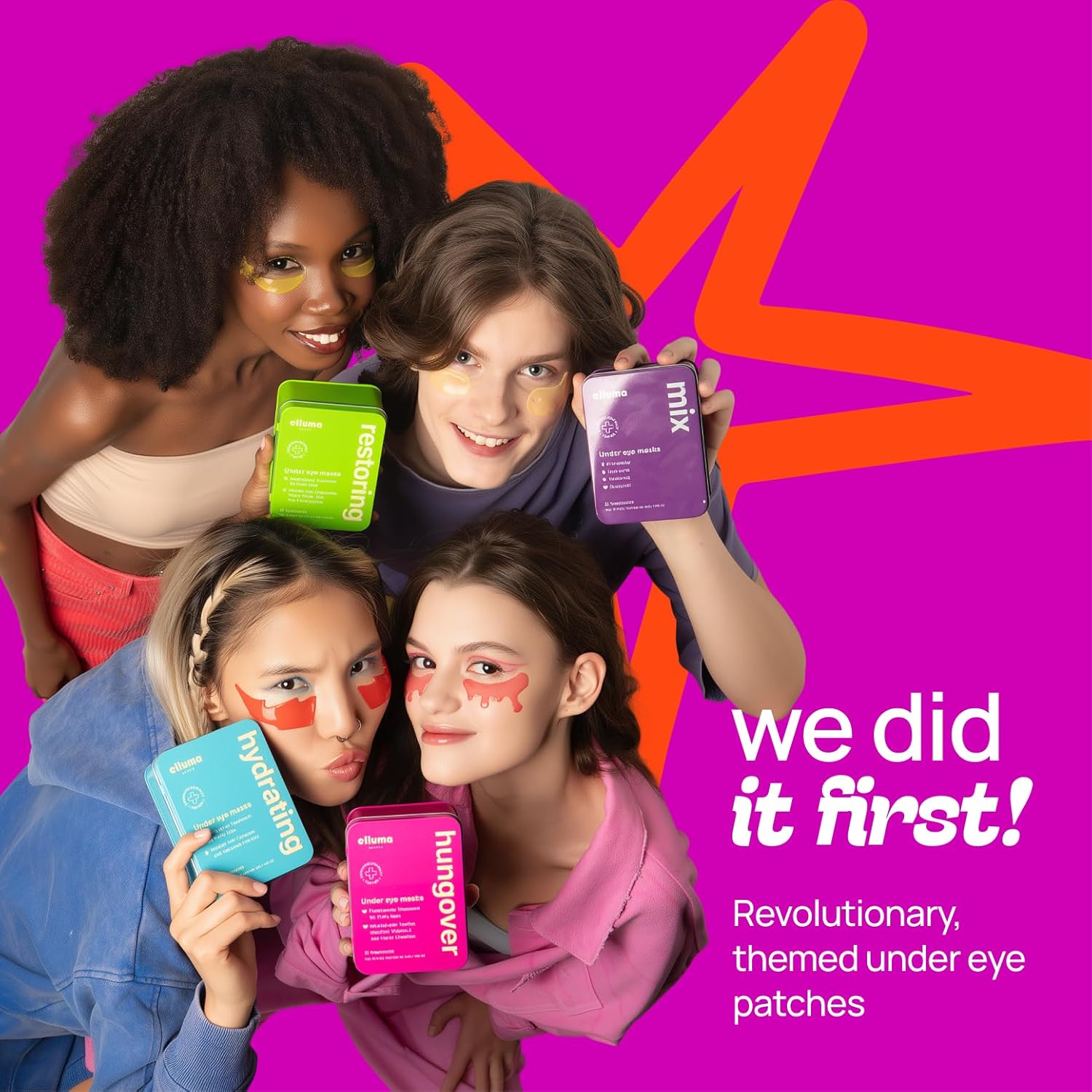 Under Eye Patches 12 Pairs of Themed Hydrogel Eye Gel Pads - For Puffy Eyes and Dark Circles, Under Eye Bags, Wrinkles - Mix Set | Energizing, Hydrating, Restoring, Hungover
