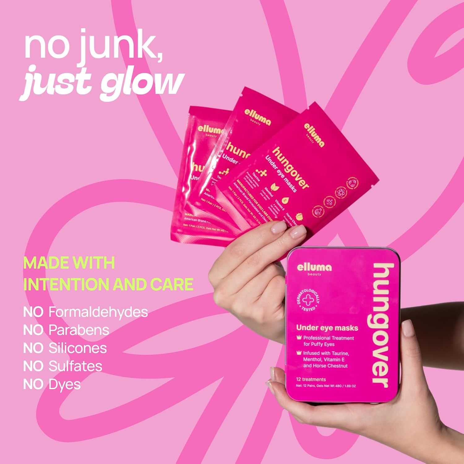 - Not just a splash — it's a skincare power move which delivers! Our game-changing under eye masks are enriched with additional recovering ingredients such as Taurine, Vitamin E and Horse Chestnut to deeply hydrate and refresh, leaving your under-eyes soft, supple, and ready to slay.