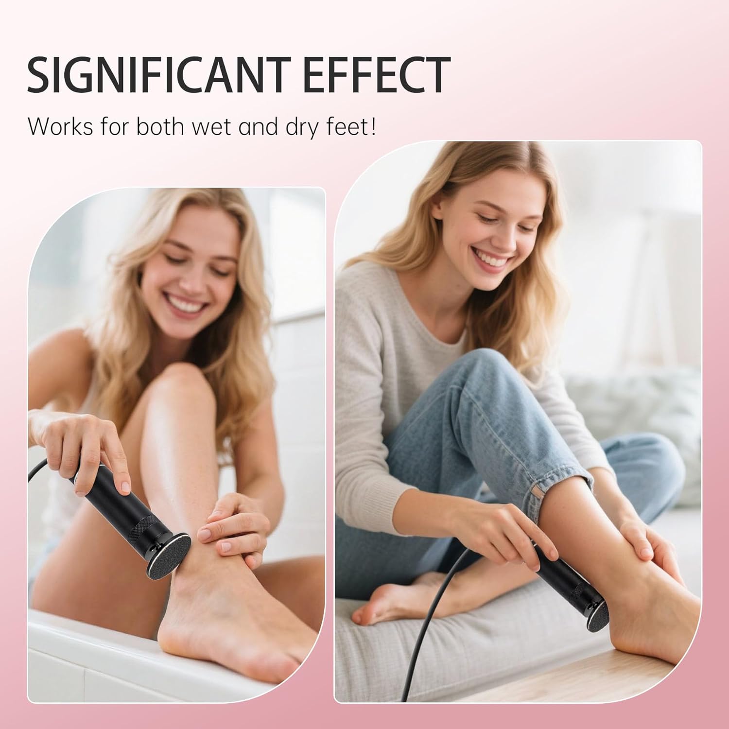 - 【Professional Pedicure Tools at Home】:Say goodbye to expensive salon visits! This Electric foot callus remover quickly removes dead skin, calluses, and hard skin, You can enjoy the salon service at home at any time.Perfect solution for dry ,calloused and cracked heels which gives soft fancy feet with little effort.