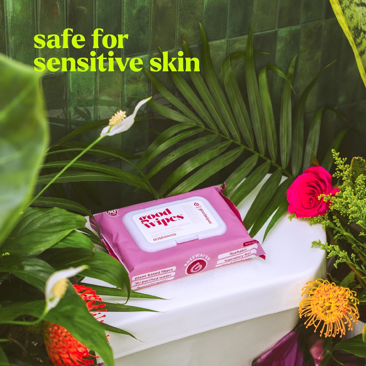 goodwipes Flushable Butt Wipes - Vitamin E & Aloe - Sewer & Septic Safe - Extra Large Adult Wet Wipes For Women & Men - Bathroom Essentials - Rosewater, 418 Count (8 Packs + 1 Travel)