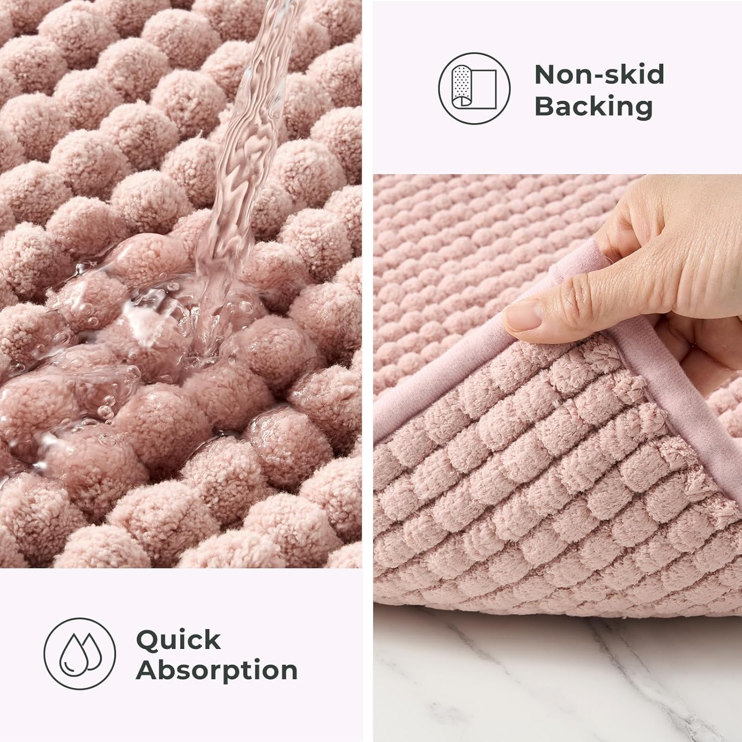 FRESHMINT Thick Chunky Chenille Bathroom Rugs 24"x36", Non Slip Bath Mat for Bathroom Floor, Large Soft Bathroom Decor Accessories, Cute Shower Mat Water Absorbent, Washable, Dusty Pink