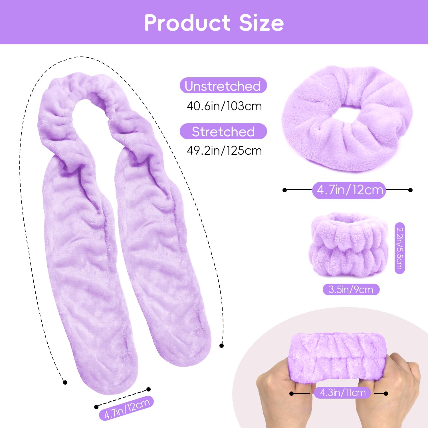 Face Wash Headband and Wristband Set Fashion Spa Headband, Coral Velvet Face Wash Set for Women, Adjustable Makeup Headbands Hair Band for Washing Face, Facial Skincare (Purple)