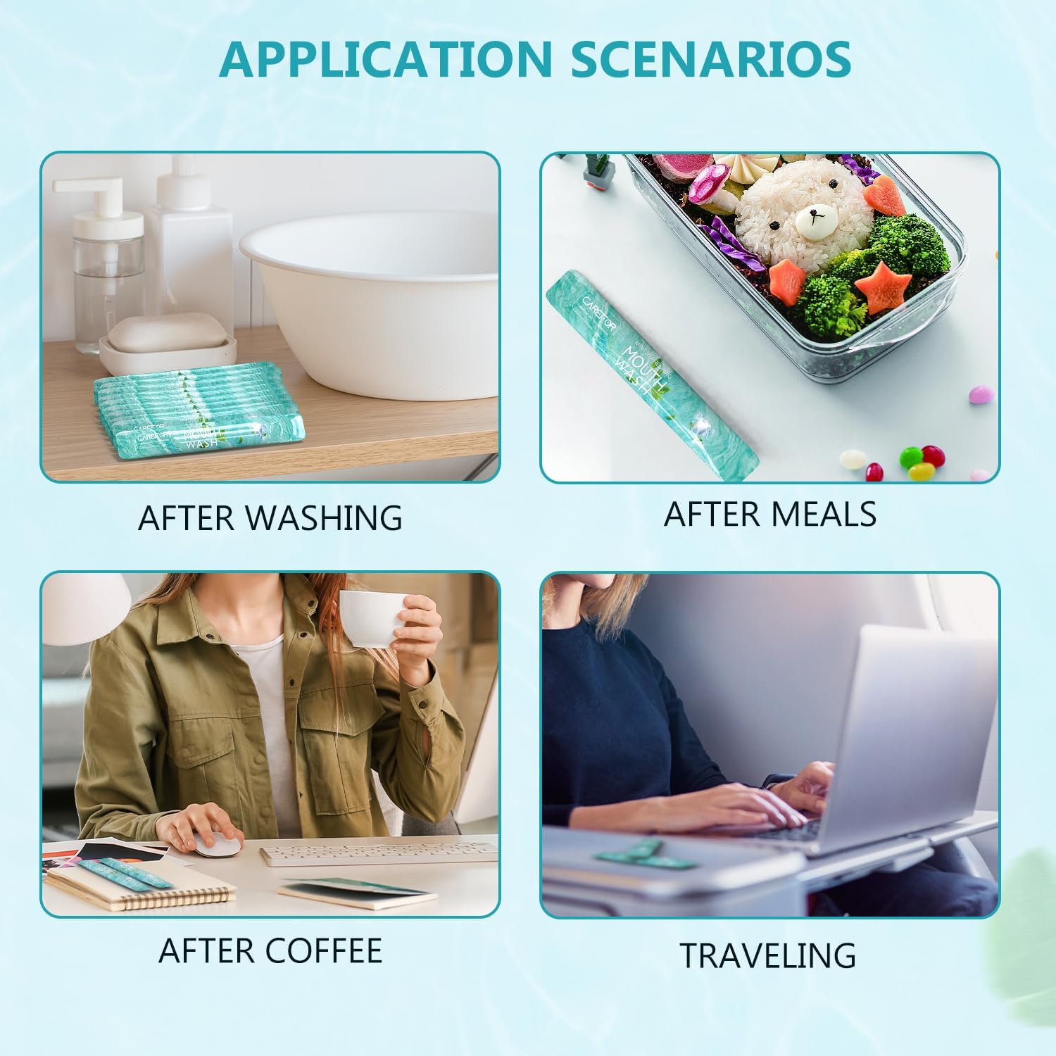 - Compact Travel Size: CAREFOR mouthwash comes in a mini travel size making it easy to carry. These small, individual packets fit perfectly in your pocket, purse, or carry-on luggage, ensuring fresh breath is always within reach.