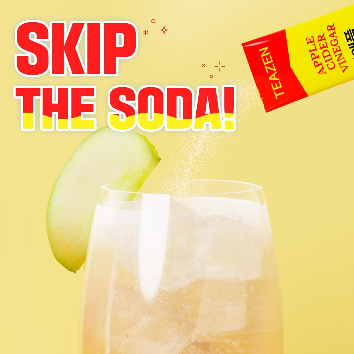 TEAZEN Apple Cider Vinegar Drink Powder Stick – On-the-Go Wellness with 1500mg ACV, Sugar-Free, Postbiotics, 10 Sticks | Supports Digestion & Metabolism