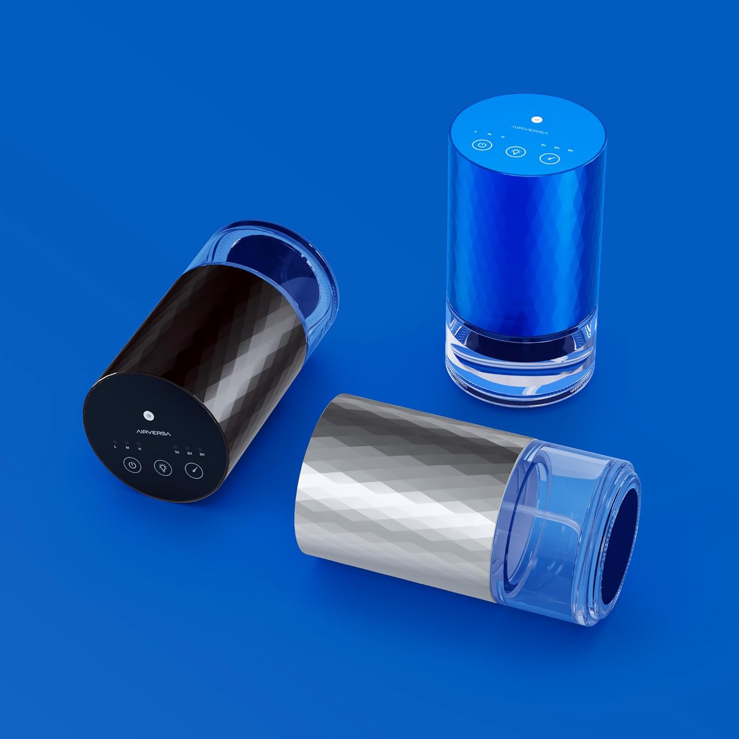 Airversa Waterless Diffuser Essential Oil 100ml Capacity Scent Air Machine for Home Aromatherapy Premium Metal Nebulizer Battery Operated 3 Mist Settings Timers Color Light AN5(Blue)