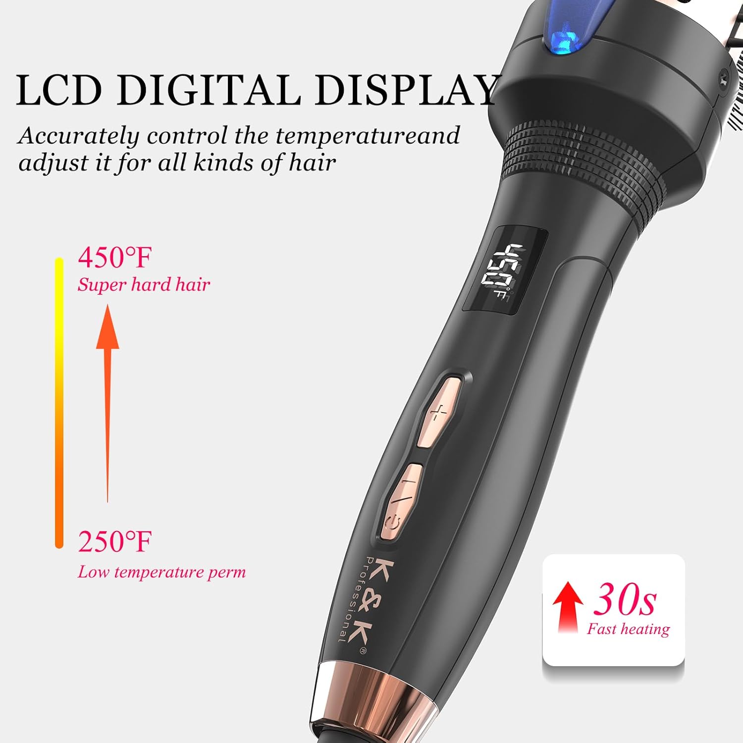 - NON-DAMAGING 350 DEGREE HEAT K&K heated brush is safe for everyday use and will never fry your hair, unlike an unnecessarily hot 400 degree curling iron.