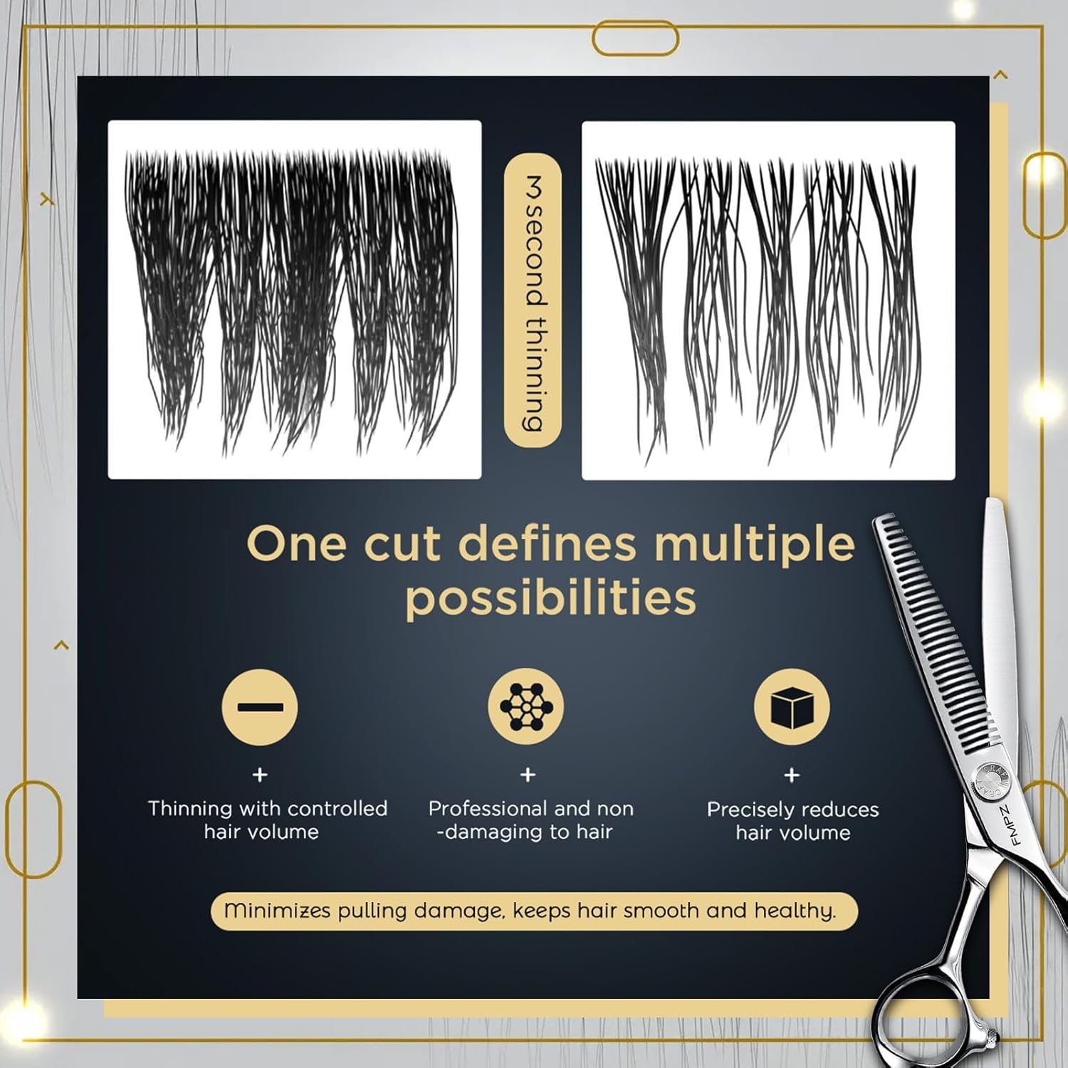 6.0” Professional Thinning Shears for Hair Cutting - Professional Hair Cutting Scissors with Extremely Sharp Blades- 440C Steel Ergonomic hair thinning scissors Durable, Smooth Motion, Fine Cut