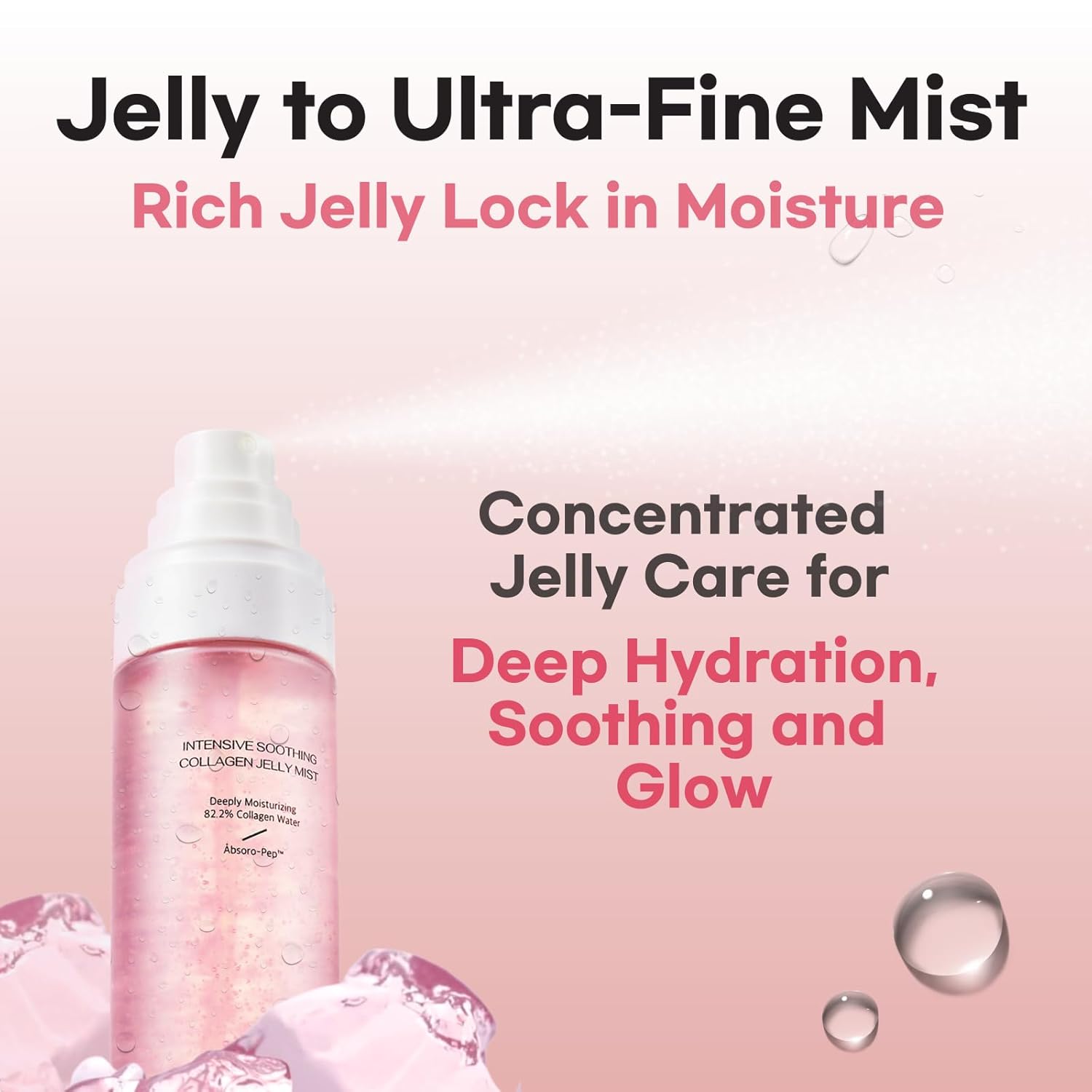 Intensive Soothing Collagen Jelly Mist, Deep Hydrating Pink facial mist, Elasticity Moisturizer, Dewy Glow Spray, Hyaluronic Acid, Lightweight Gentle for All Skin, Korean skin care 3.38 fl oz