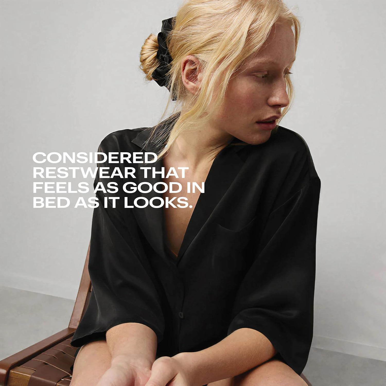 Lunya Washable Silk Scrunchies - Mulberry Silk Hair Ties - Gentle on Hair - Immersed Black - One Size Fits Most