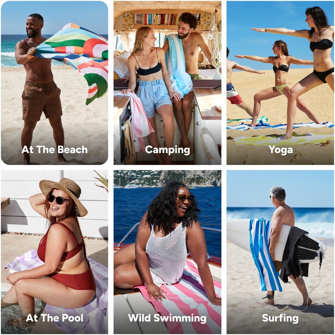 - QUICK DRYING & SUPER ABSORBENT - The fibres will soak up all water and moisture off of you in no time leaving you dry and ready to go. Our beach towel dries 3x faster than standard cotton towels and will keep free of unpleasant damp smells