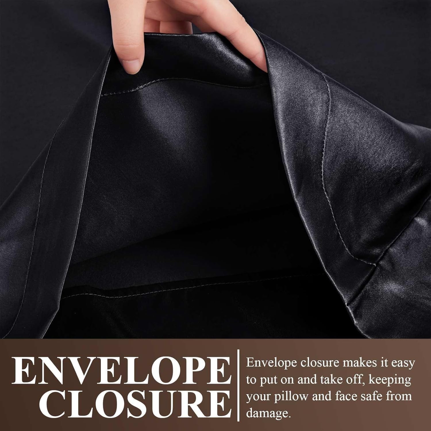 Juwenin Bedding,Super Soft and Luxury Silky Satin Pillowcase (Silky Satin Pillow Case for Hair) Set of 2 (Black, King (20'x40'))