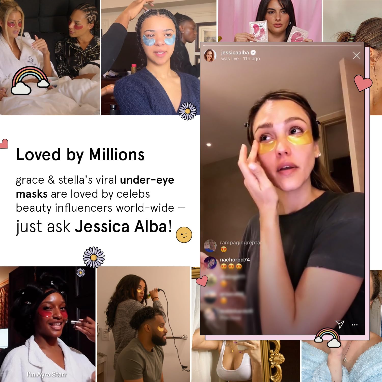 - Loved By Millions - Not to brag, but our under eye patches for puffy eyes are kind of famous. They’re featured in magazines like Elle & Marie Claire, and used by celebrities like Jessica Alba. Experience the hype with this all-color variety set!