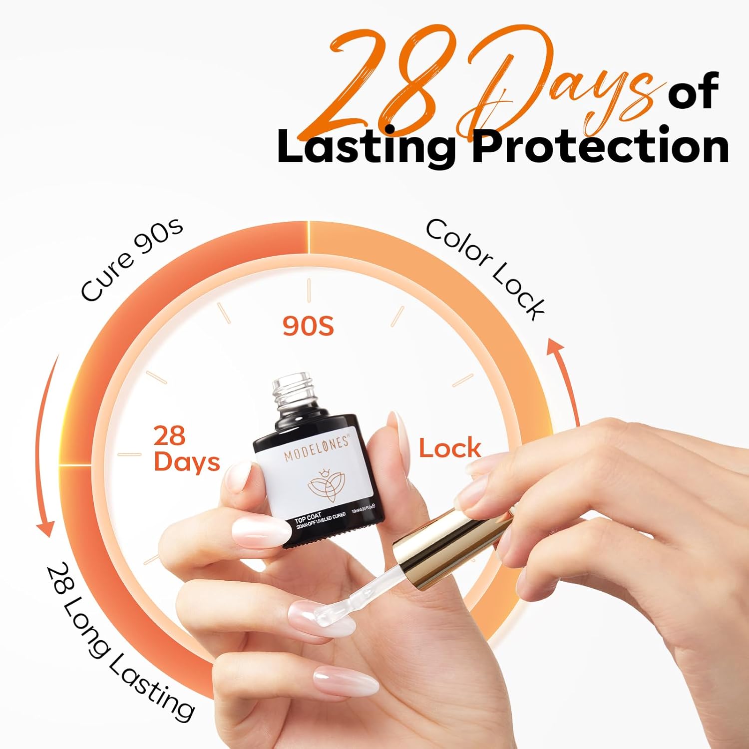 - No Wipe Glossy Gel Top Coat: modelones top coat gel nail polish offers high-gloss, mirror-shine finish. Resists chips and scratches. Cures fast under nail lamp. Smooths evenly and seals any manicure for lasting wear up to 28 days