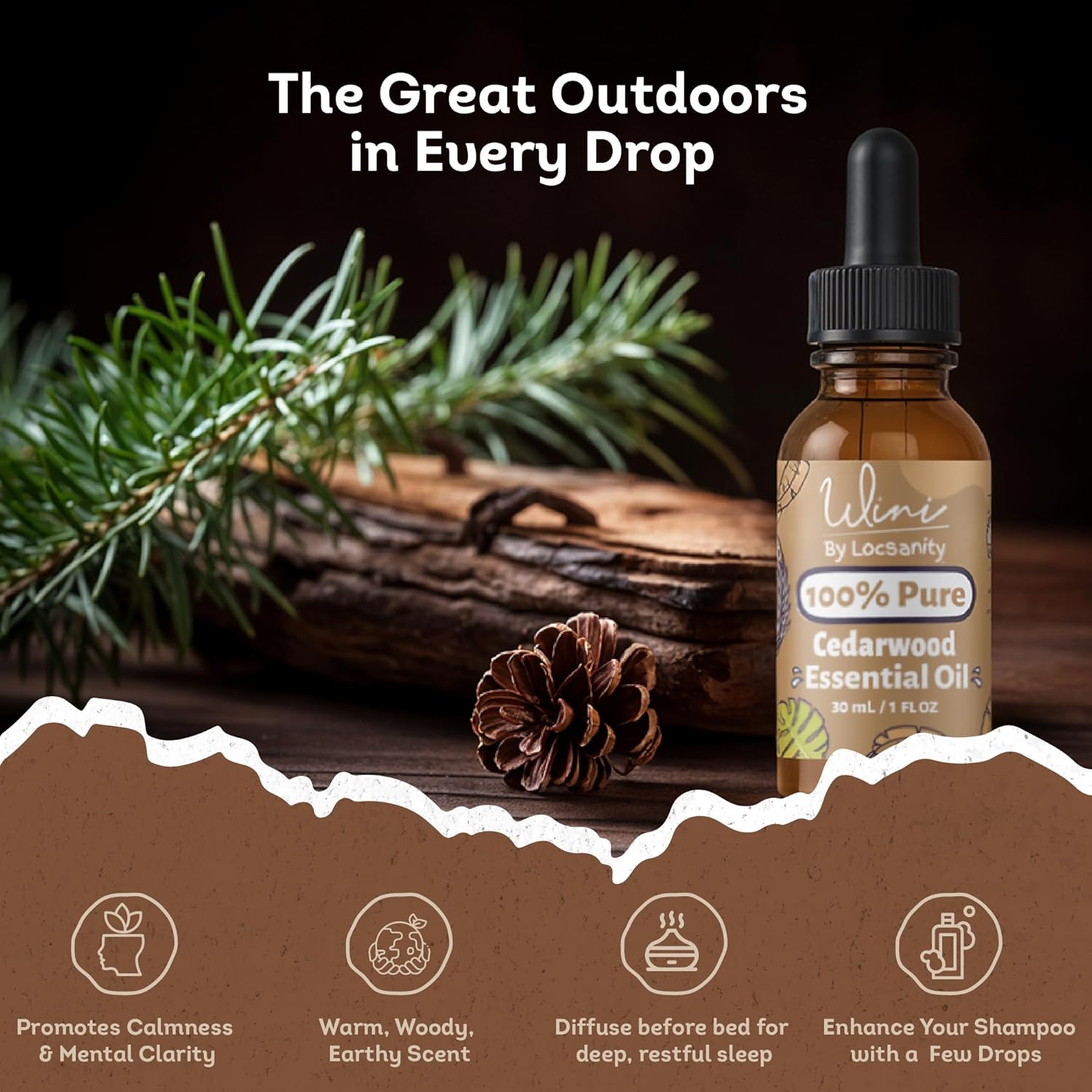 WINI by Locsanity Cedarwood Essential Oil with Glass Dropper | 100% Pure and Natural Cedarwood Diffuser Oil | Premium Grade Essential Oils for Skin Care, Aromatherapy, Hair & Scalp, Massage | 30ml