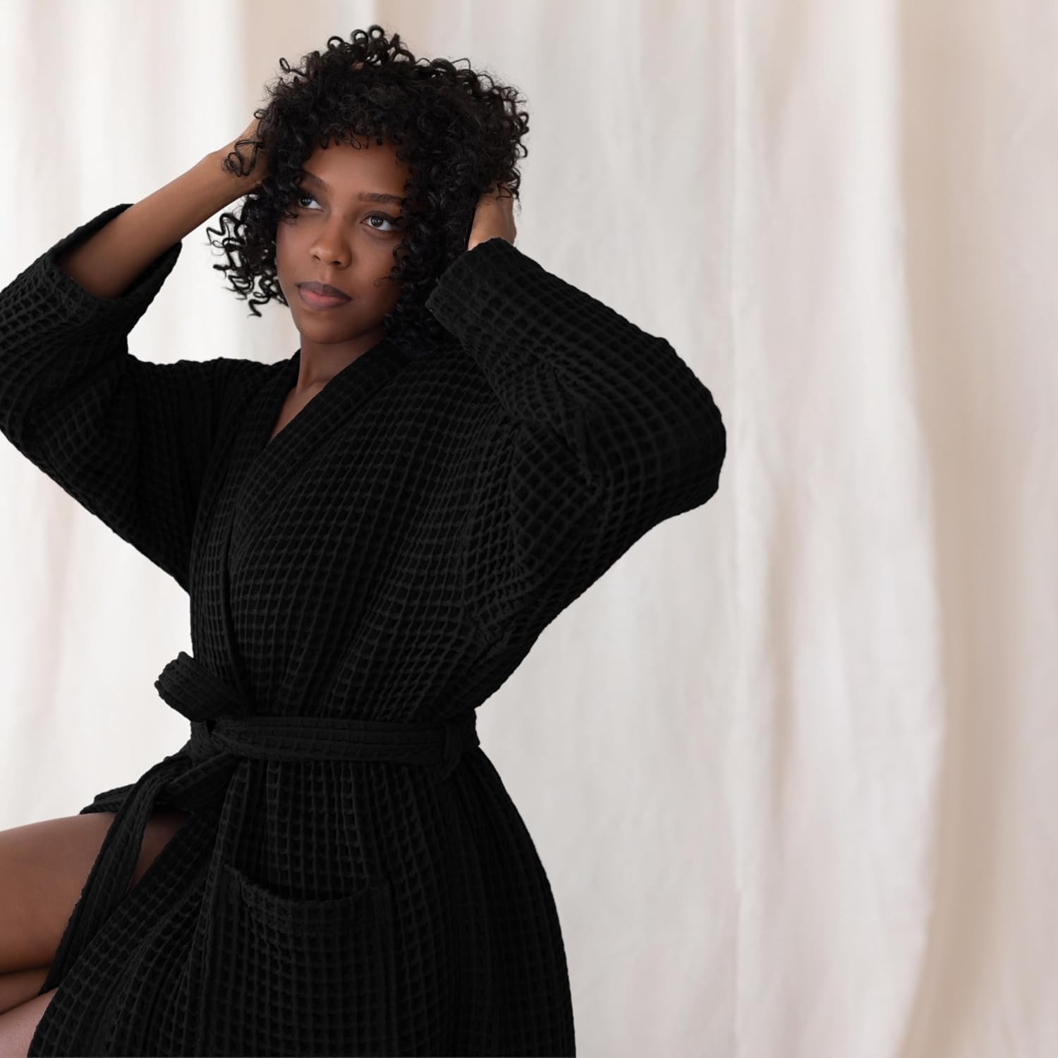 • Your Ultimate At-Home Comfort Garment: Discover the perfect fusion of a luxurious bath robe and a stylish housecoat. Crafted from 100% premium Turkish Cotton, our waffle knit robe is designed to be the first thing you put on in the morning and the last thing you take off. Its soft, cozy feel makes every moment at home feel like a special occasion.