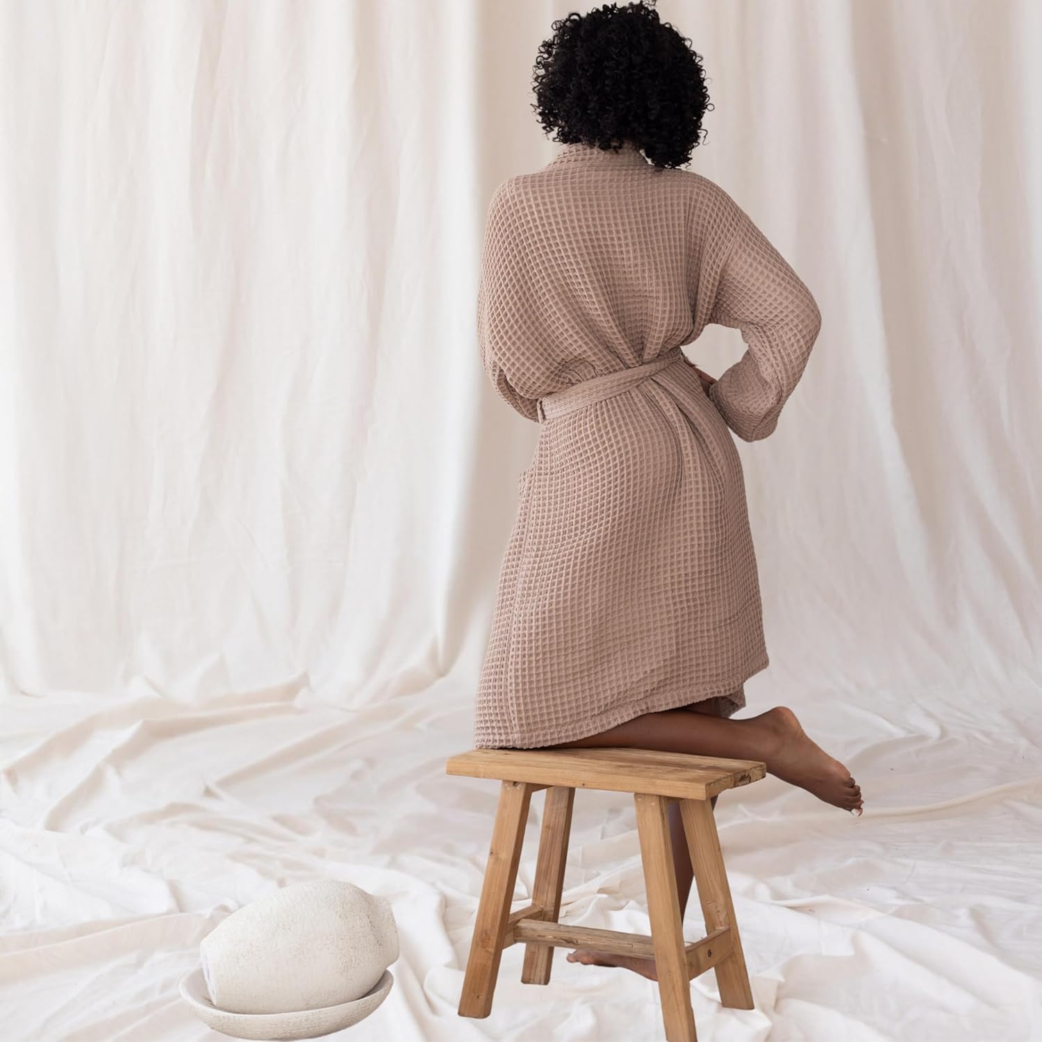 Womens Kimono Waffle Robe - Lightweight 100% Turkish Cotton Housecoat for All-Day Lounging - Bathrobe for Shower