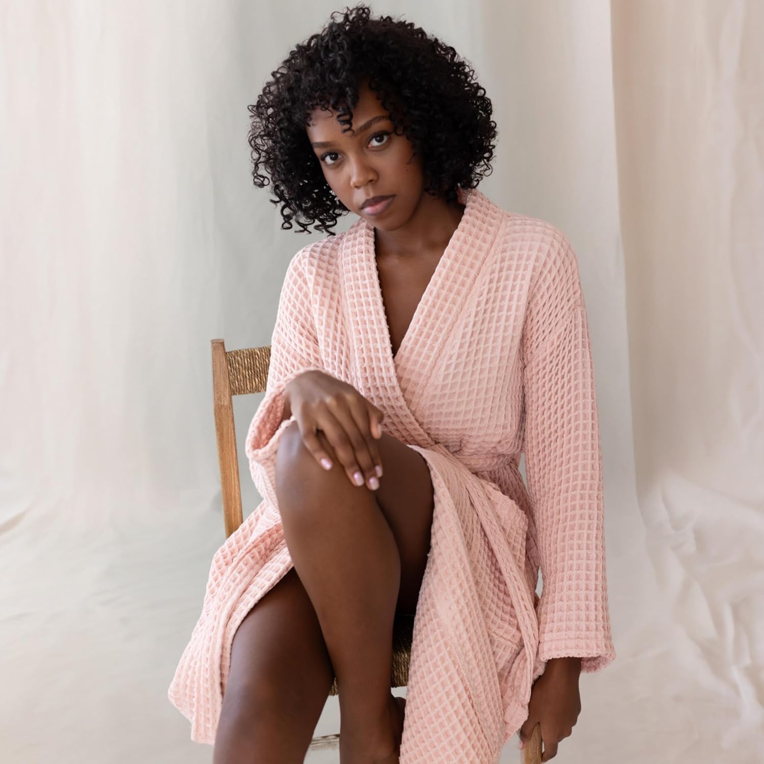 Womens Kimono Waffle Robe - Lightweight 100% Turkish Cotton Housecoat for All-Day Lounging - Bathrobe for Shower