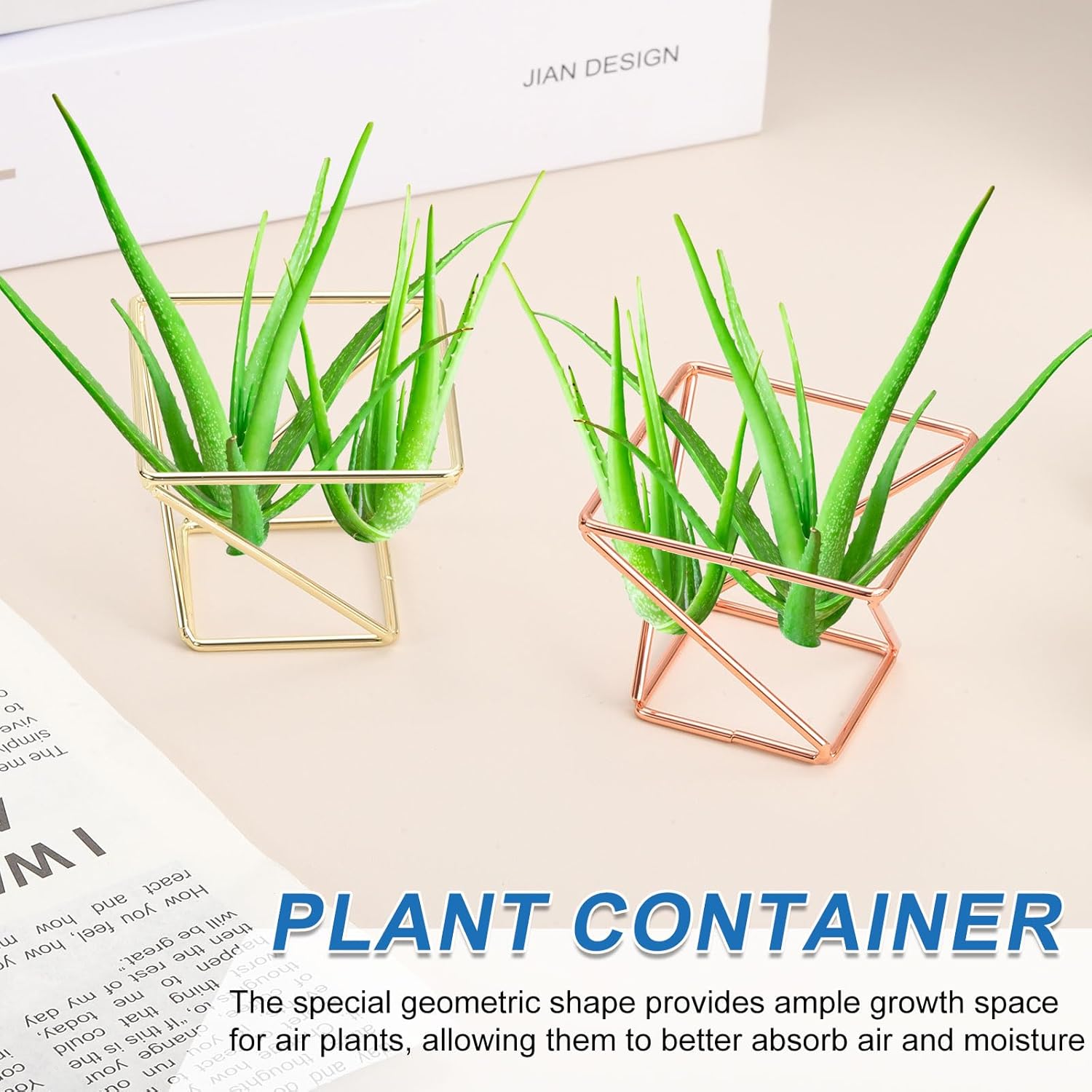 - [MATERIAL]: The air plant holder is made of a thicker metal frame with a smooth surface and electroplating treatment. It is not easy to fade or deform and can be used for a long time. The beautiful appearance can add a modern and warm atmosphere to the home